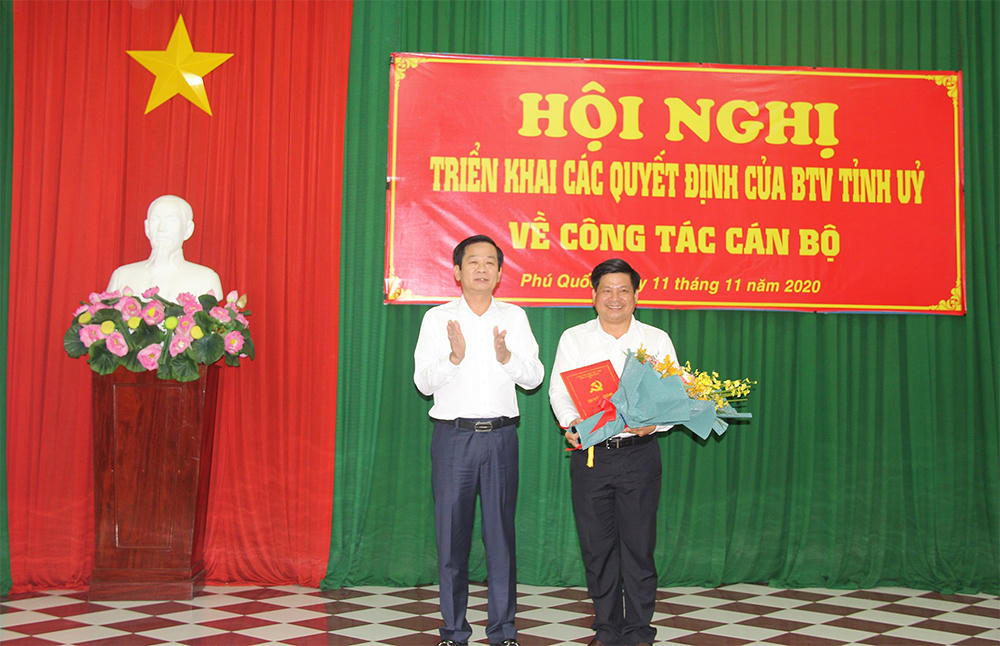 Tại hội nghị, đồng chí Đỗ Thanh Bình - Bí thư Tỉnh ủy Kiên Giang - đã trao các quyết định của Ban Thường vụ Tỉnh ủy về việc luân chuyển, phân công chỉ định ông Tống Phước Trường - Ủy viên Ban thường vụ Tỉnh ủy, Phó trưởng Ban thường trực Ban Tuyên giáo Tỉnh ủy - tham gia Ban Chấp hành, Ban Thường vụ, giữ chức Bí thư Huyện ủy Phú Quốc nhiệm kỳ 2020-2025 và trao quyết định cho ông Mai Văn Huỳnh - thôi tham gia Ban Chấp hành, Ban Thường vụ Huyện ủy, thôi giữ chức Bí thư Huyện ủy Phú Quốc nhiệm kỳ 2020-2025 - để nhận nhiệm vụ mới.