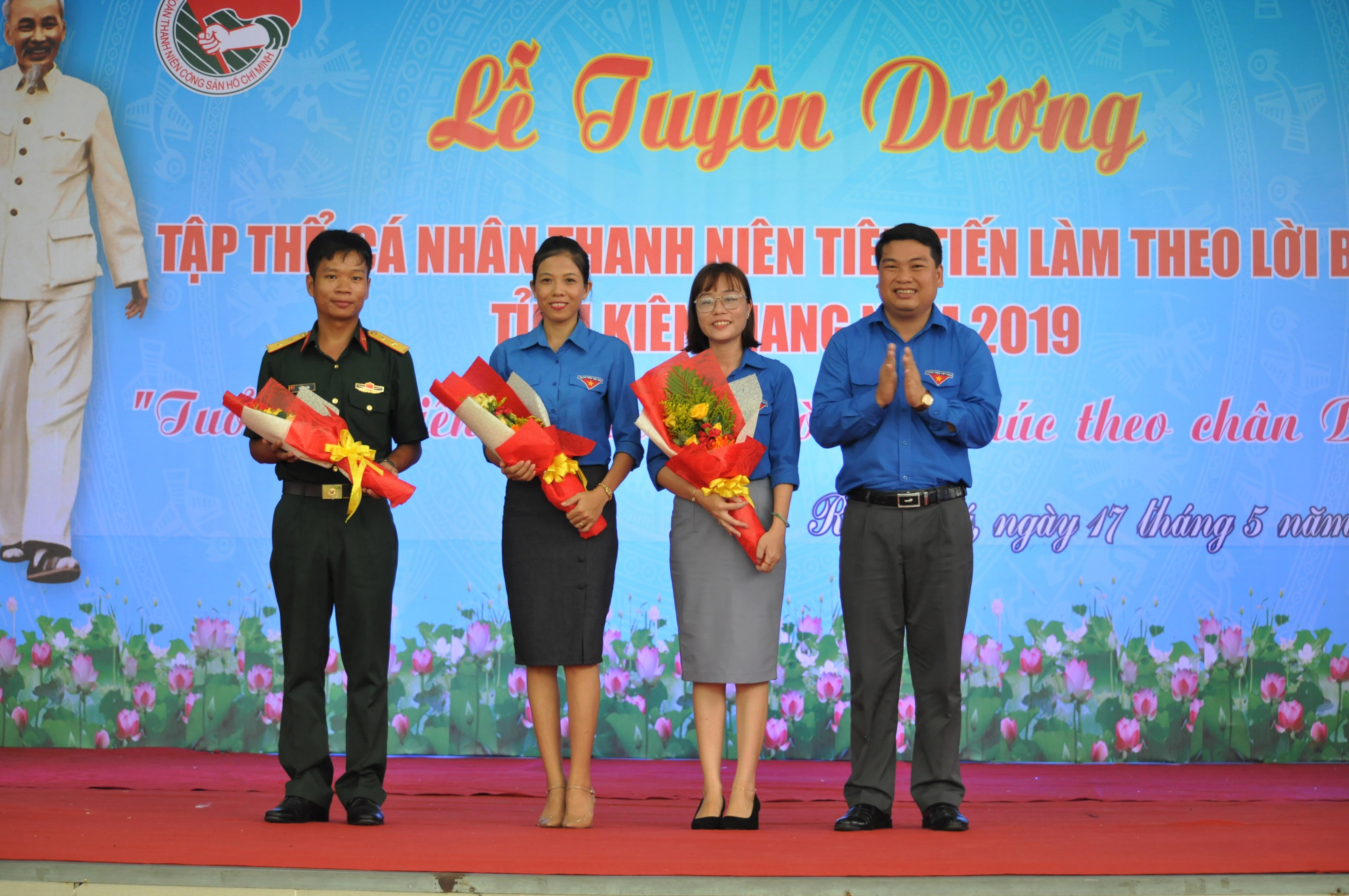 Tại buổi lễ, Ban thường vụ Tỉnh Đoàn kiên Giang đã tuyên dương 14 tập thể và 26 cá nhân có thành tích xuất sắc trong thực hiện tốt việc học tập và làm theo lời Bác trên các lĩnh vực của Đoàn. Cùng đó, Ban Tổ chức cũng đã tiến hành trao thưởng cho 14 cá nhân đạt giải trong cuộc thi viết “Tìm hiểu Di chúc chủ tịch Hồ Chí Minh”.