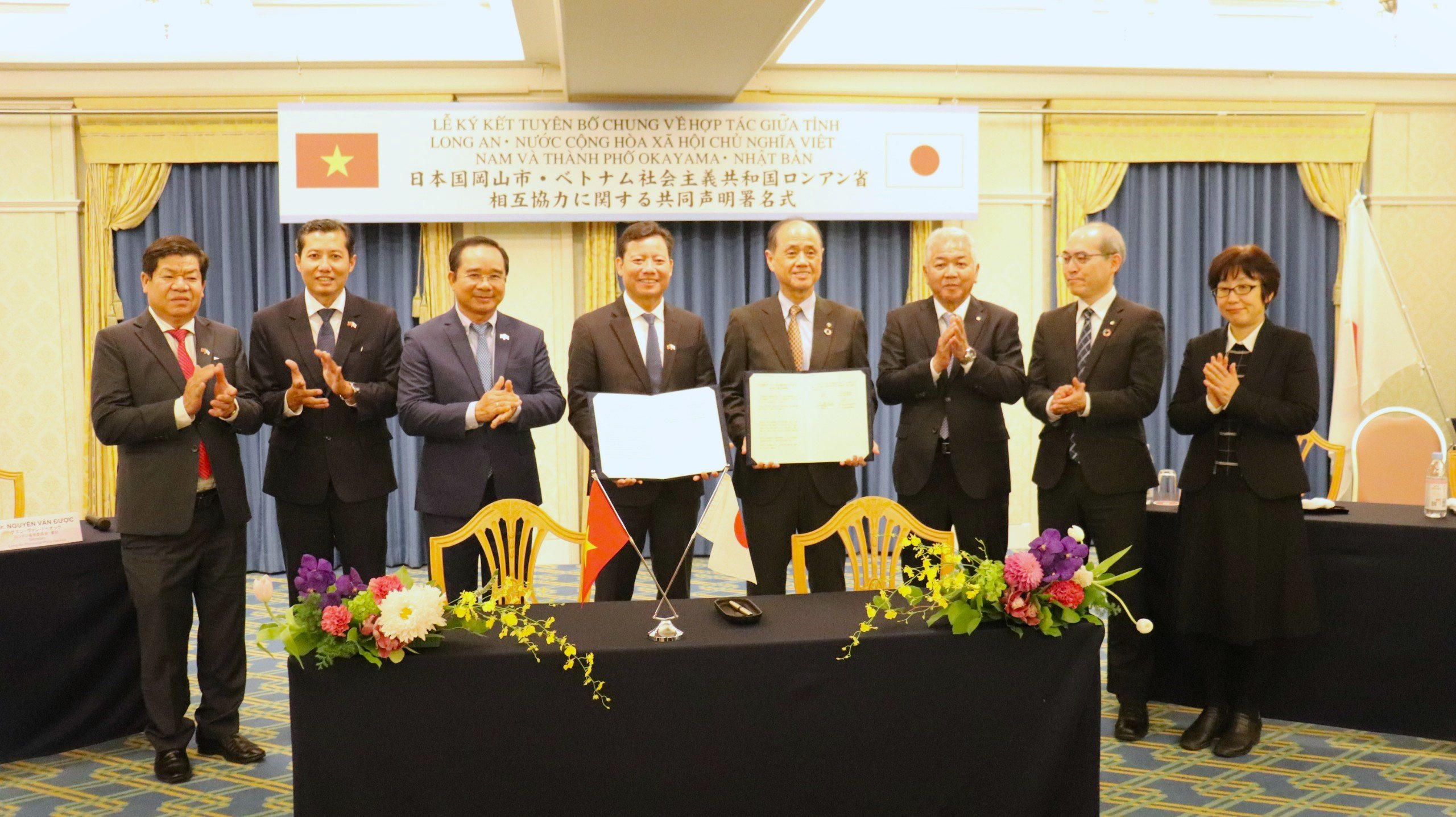 Cũng trong buổi làm việc này, ông Phạm Tấn Hòa - Phó Chủ tịch UBND tỉnh Long An và ông Masao Omori, Thị trưởng TP Okayama đã ký kết Tuyên bố chung về thúc đẩy hợp tác trong lĩnh vực đào tạo nghề, giới thiệu việc làm cho lao động Việt Nam sang làm việc tại Nhật Bản; thuộc các lĩnh vực sản xuất công nghiệp, nông nghiệp, thương mại, đầu tư, du lịch, giao lưu văn hóa, nghệ thuật, giáo dục, đào tạo...