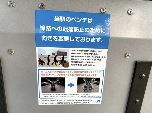Thì ra, lý do chính của việc sắp xếp chỗ ngồi khác thường là để bảo vệ những khách hàng say rượu không bị ngã khỏi sân ga. Soranews24 cũng ghi nhận khi đi qua một số nhà ga khác trong vùng Kansai, họ nhận thấy có các áp phích giải thích về việc sắp đặt chỗ ngồi như vậy.