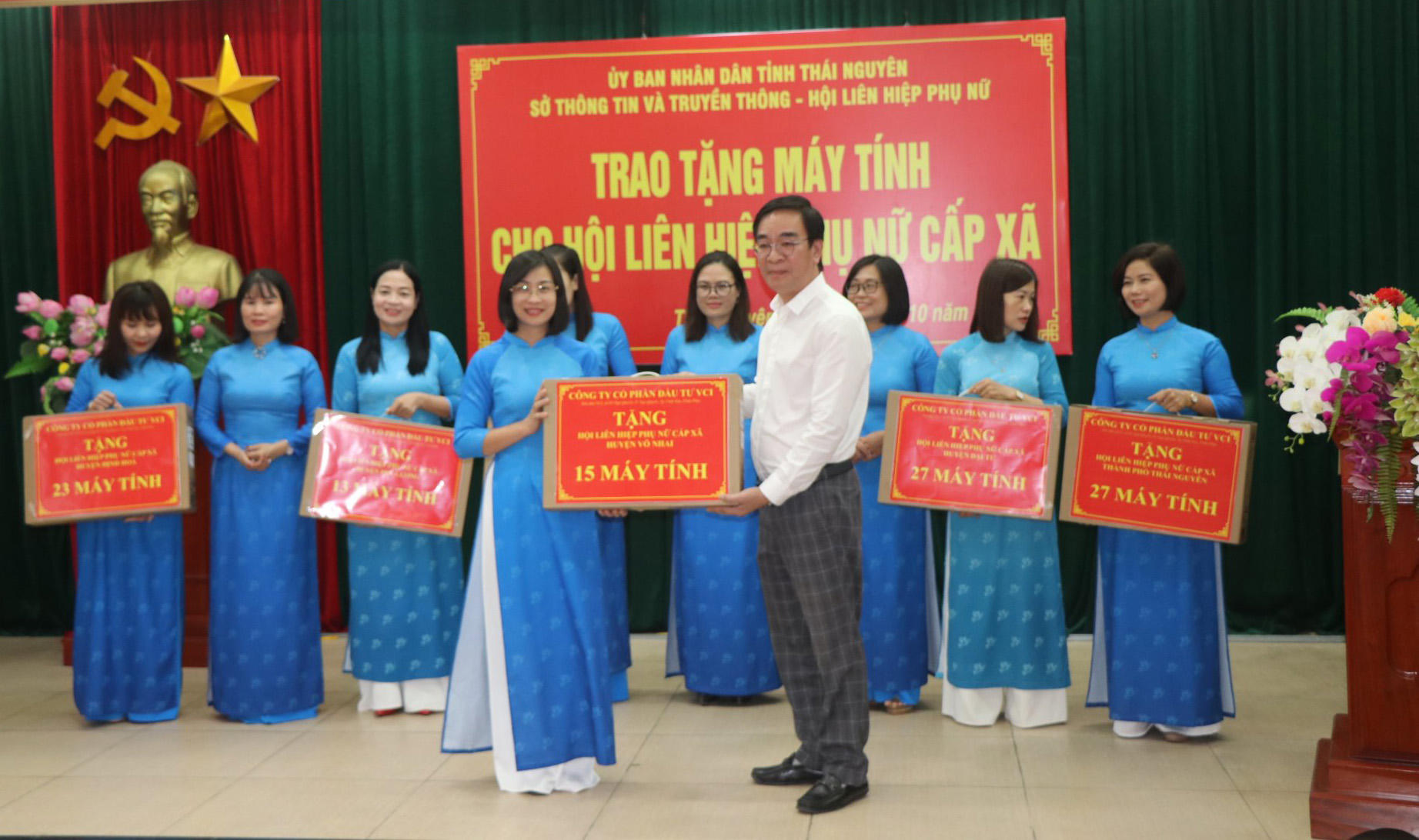 Đây là kết quả việc thực hiện kết luận của Chủ tịch UBND tỉnh Thái Nguyên tại Hội nghị đối thoại giữa Chủ tịch UBND tỉnh với cán bộ, hội viên phụ nữ ngày 13/10 vừa qua. Sở Thông tin và Truyền thông - đơn vị được giao thực hiện nhiệm vụ, đã kết nối với Công ty CP Đầu tư VCI để tài trợ 166 máy tính cho hội LHPN cấp xã trên địa bàn tỉnh.