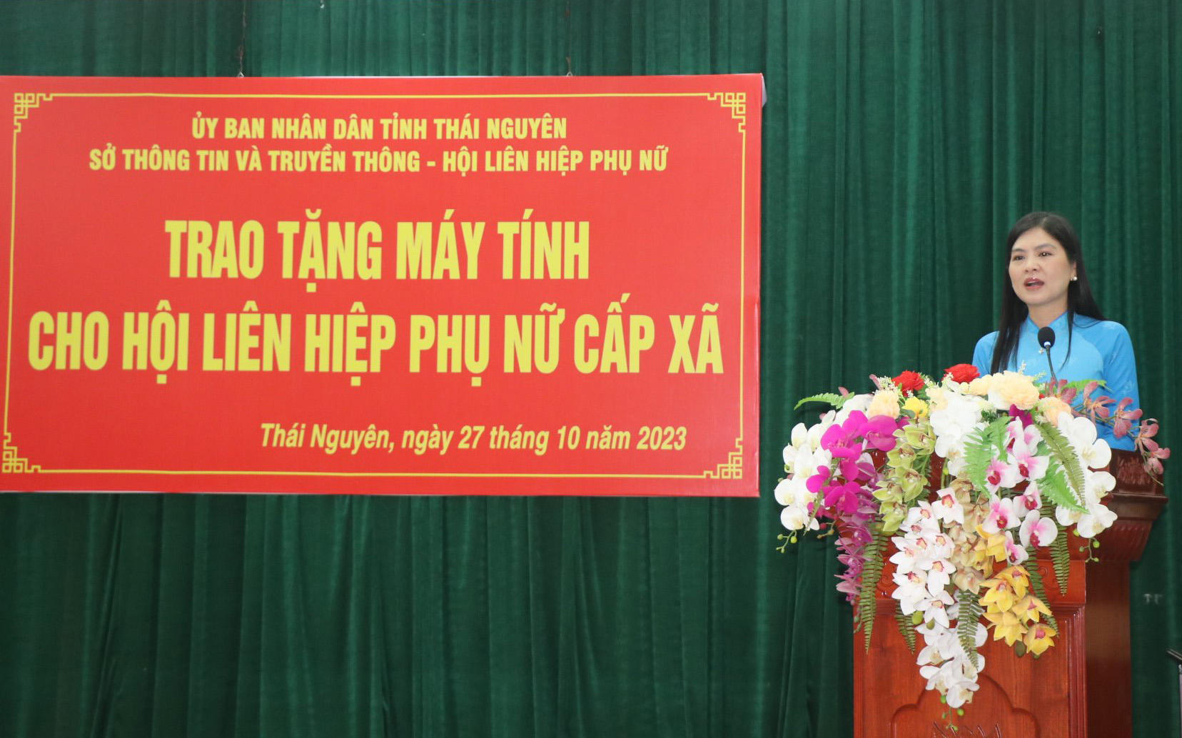 (PLVN) - Thực hiện Kết luận của Chủ tịch UBND tỉnh Thái Nguyên tại Hội nghị đối thoại giữa Chủ tịch UBND tỉnh với cán bộ, hội viên các cấp Hội phụ nữ tỉnh ngày 13 tháng 10 năm 2023, Ủy ban nhân dân tỉnh tổ chức Chương trình trao tặng máy tính cho Hội liên hiệp Phụ nữ cấp xã tỉnh Thái Nguyên.