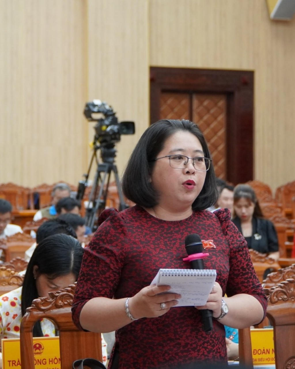Đại biểu Đặng Thị Hồng Gấm (Tổ đại biểu TP. Phú Quốc) nêu vấn đề về tỷ lệ phân luồng, hướng nghiệp học sinh sau tốt nghiệp THCS trên địa bàn còn thấp. Nhiều học sinh chưa học nghề đã xin vào làm việc sớm tại các công ty. Qua đó, đề nghị, lãnh đạo ngành lao động, thương binh và xã hội cho biết giải pháp khắc phục tình trạng này.