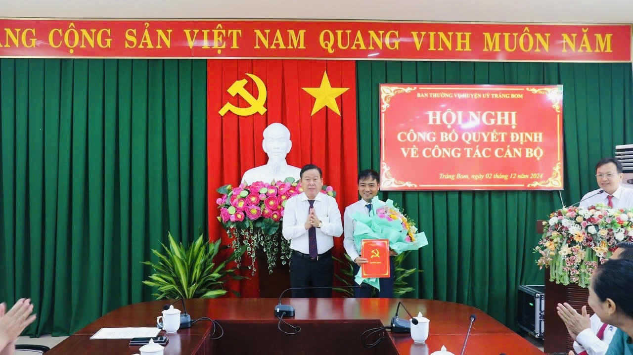 Tại buổi lễ, đại diện Sở nội vụ tỉnh Đồng Nai đã công bố Quyết định của UBND tỉnh Đồng Nai về điều động ông Nguyễn Quốc Tần - Chánh văn phòng Sở xây dựng Đồng Nai đến nhận công tác tại UBND huyện Trảng Bom, thực hiện quy trình bầu Phó chủ tịch UBND huyện. Ban tổ chức Tỉnh ủy Đồng Nai cũng Công bố Quyết định chỉ định ông Nguyễn Quốc Tần tham gia Ban Chấp hành Đảng bộ huyện Trảng Bom nhiệm kỳ 2020-2025. Ban Thường vụ Tỉnh ủy Đồng Nai giao Ban Thường vụ Huyện ủy Trảng Bom lãnh đạo HĐND huyện giới thiệu bầu bổ sung chức danh Phó chủ tịch UBND huyện Trảng Bom nhiệm kỳ 2020 - 2025.