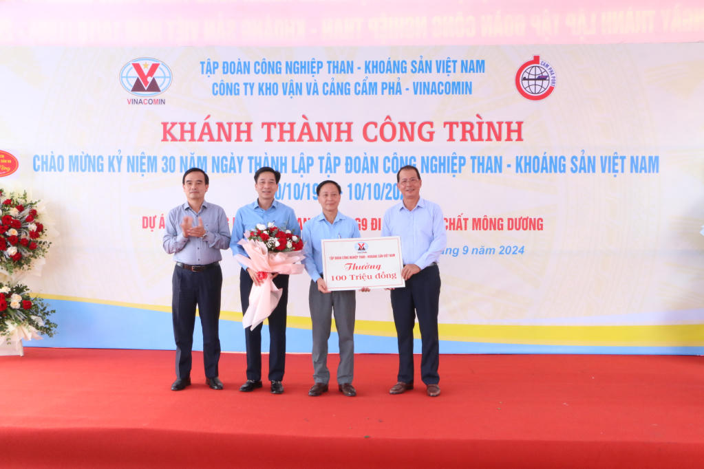 Lãnh đạo TKV trao khen thưởng cho Công ty Kho vận và Cảng Cẩm Phả. |