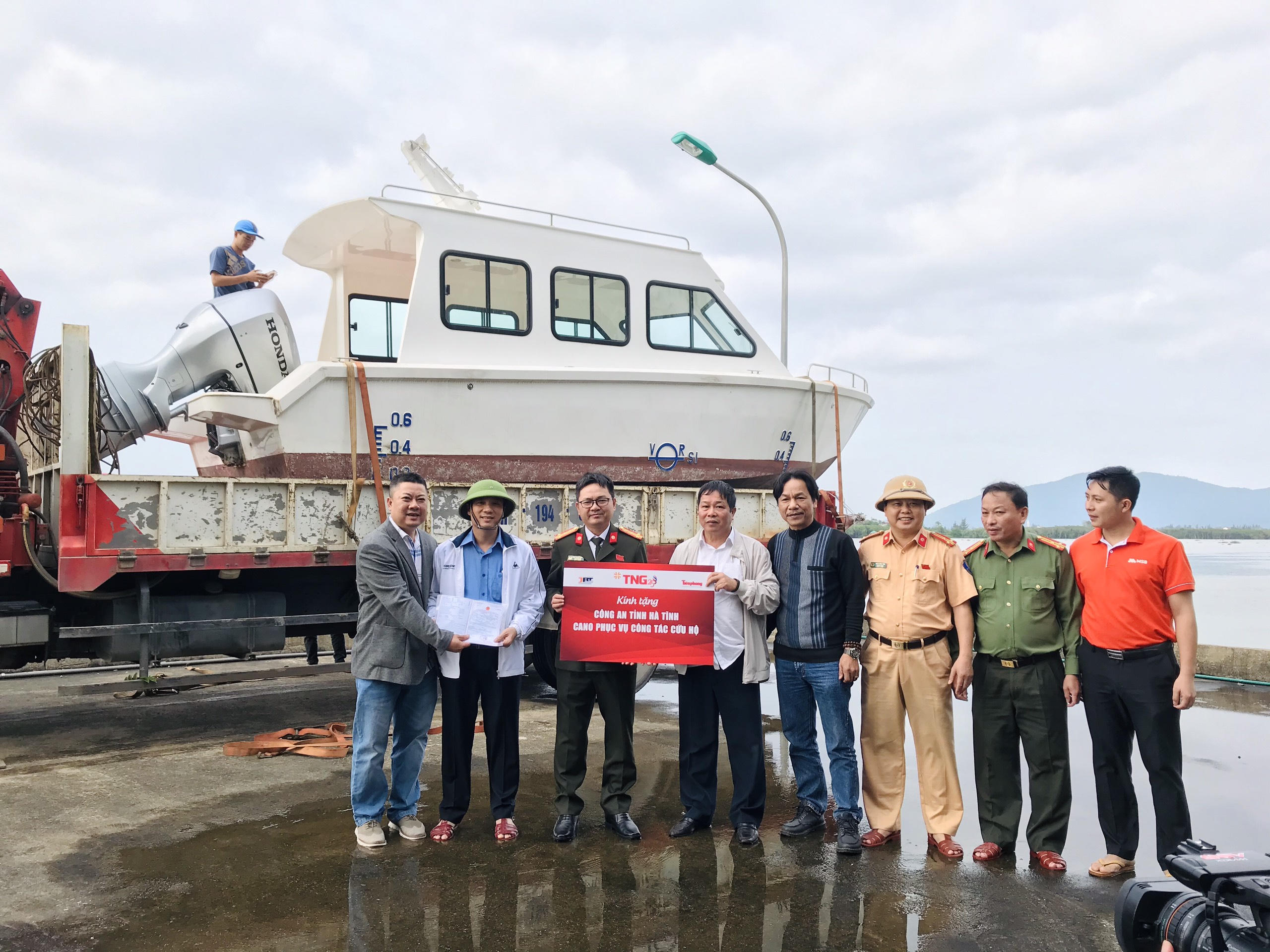 Trước đó, chiếc ca nô thứ nhất đã được Tập đoàn TNG Holdings Vietnam bàn giao cho Công an tỉnh Hà Tĩnh vào chiều qua 21/10/2020. Ngay sau đó, chiếc ca nô được hạ thuỷ và đưa vào biên chế cho lực lượng công an tỉnh Hà Tĩnh để kịp thời đi vào vùng rốn lũ cứu dân.
