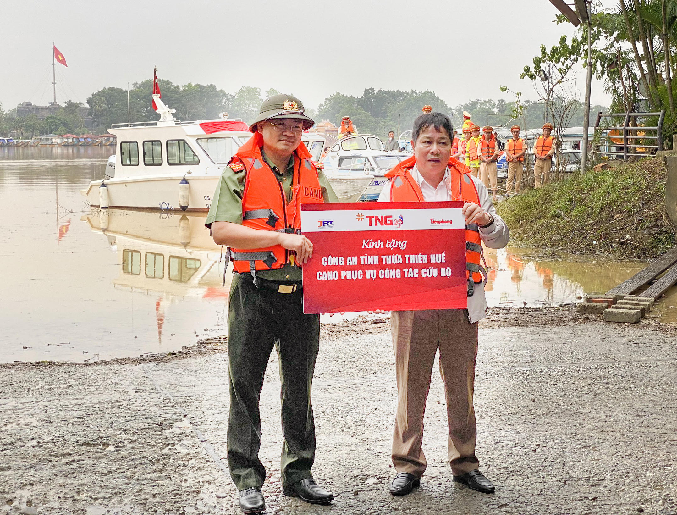 Sáng nay, 22/10/2020, tại thành phố Huế, đại diện Tập đoàn TNG Holdings Vietnam đã hoàn thành việc bàn giao hai chiếc cano cứu hộ cho đại diện Bộ Công an.