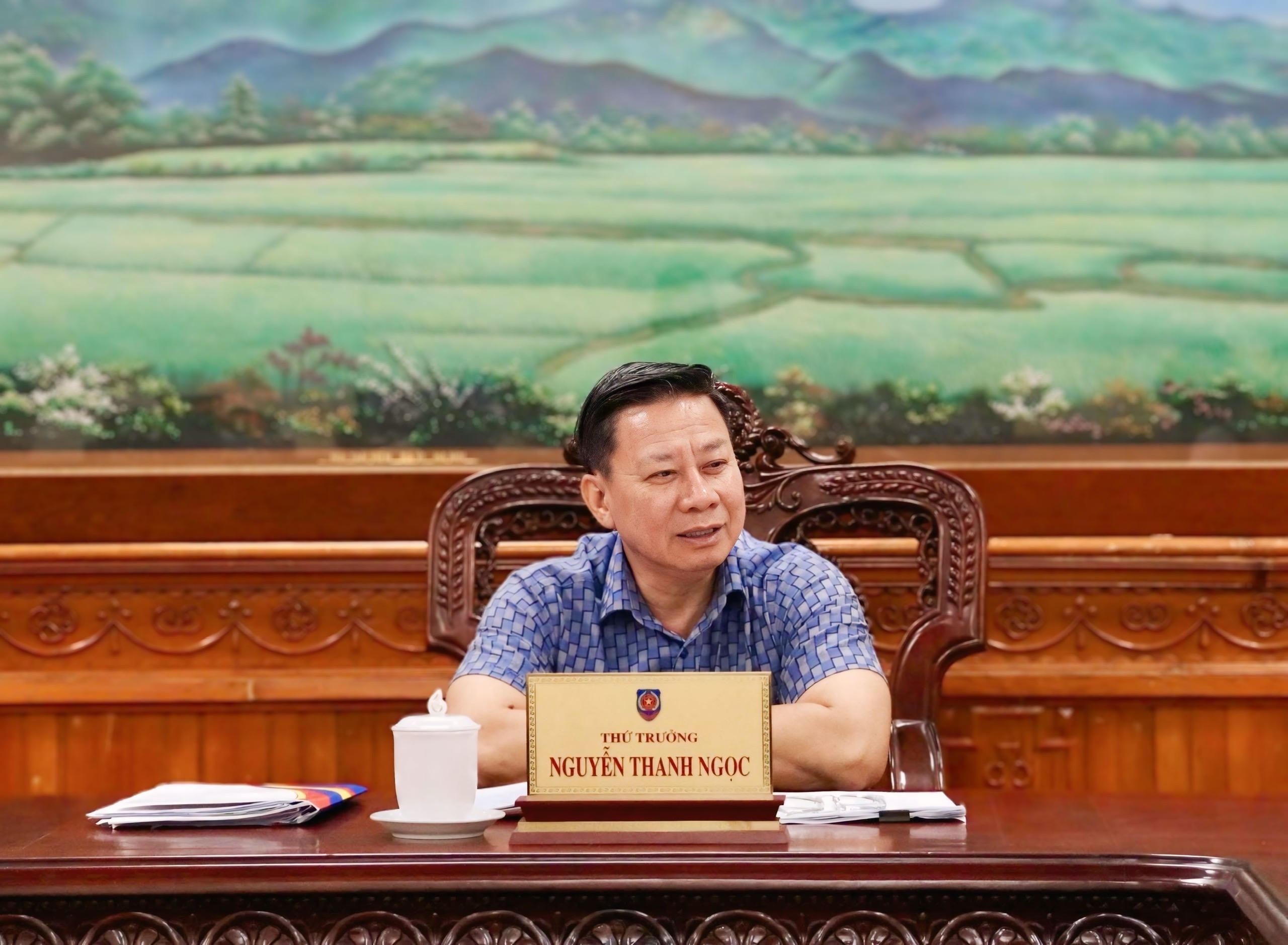 Thứ trưởng Nguyễn Thanh Ngọc phát biểu tại buổi làm việc. |