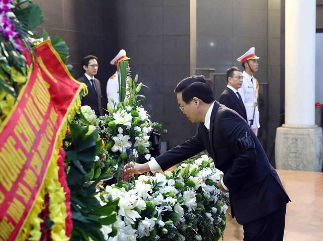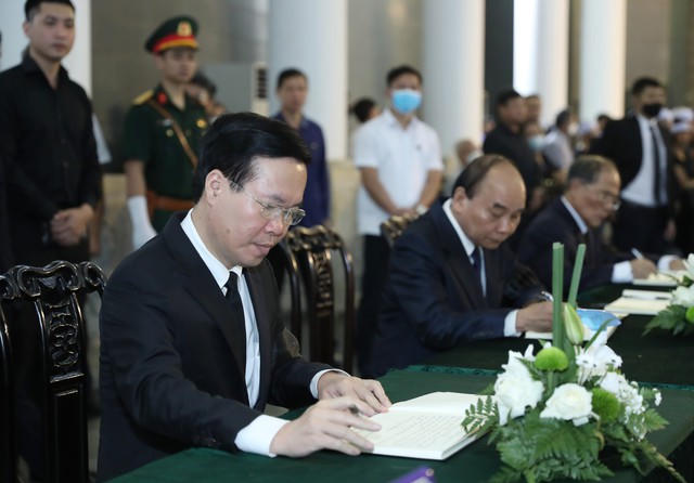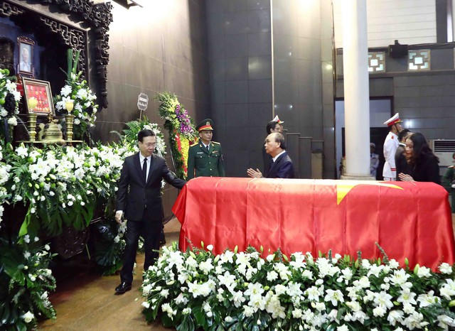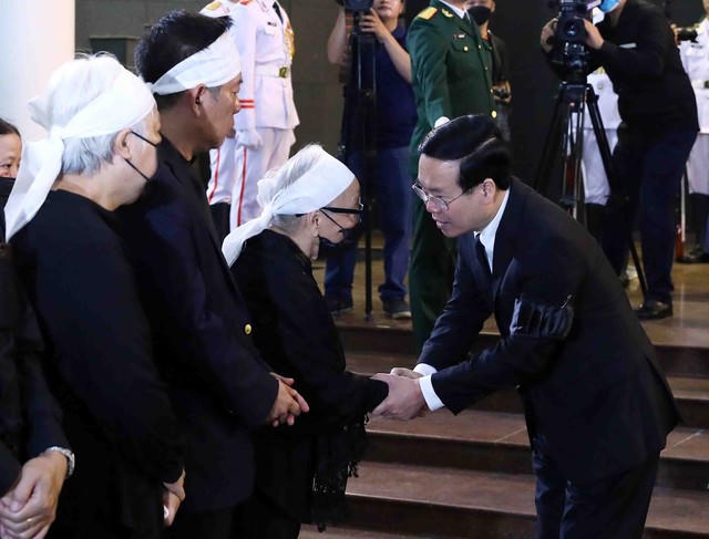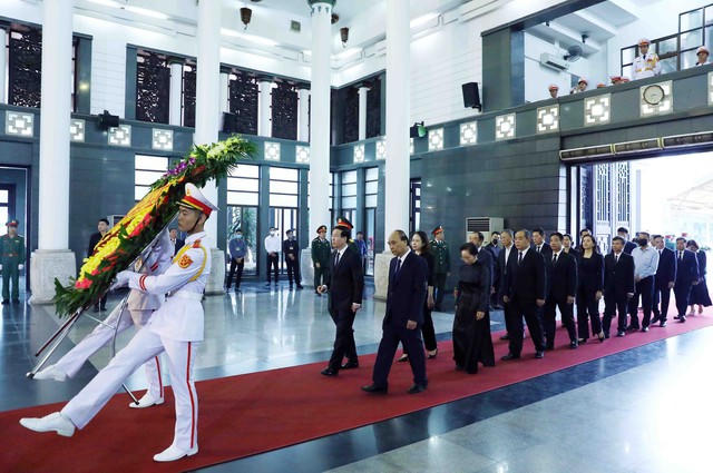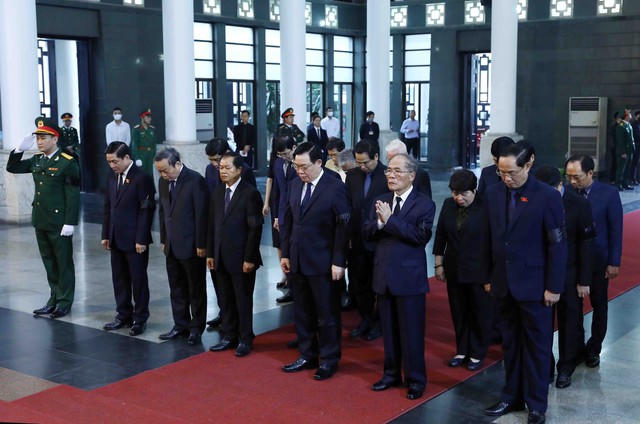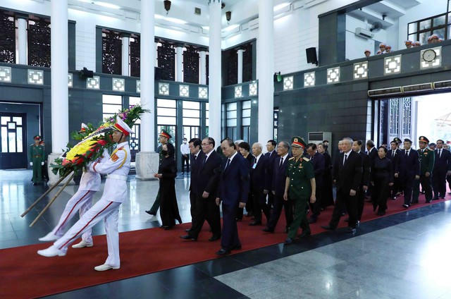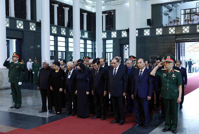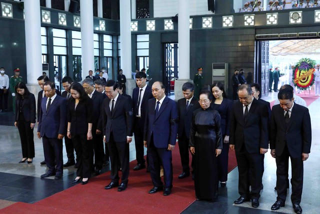 Nguyên Tổng Bí thư Nông Đức Mạnh, nguyên Chủ tịch nước: Trương Tấn Sang, Nguyễn Xuân Phúc; nguyên Thủ tướng Chính phủ Nguyễn Tấn Dũng; nguyên Chủ tịch Quốc hội: Nguyễn Văn An, Nguyễn Sinh Hùng, Nguyễn Thị Kim Ngân... tham gia đoàn viếng.