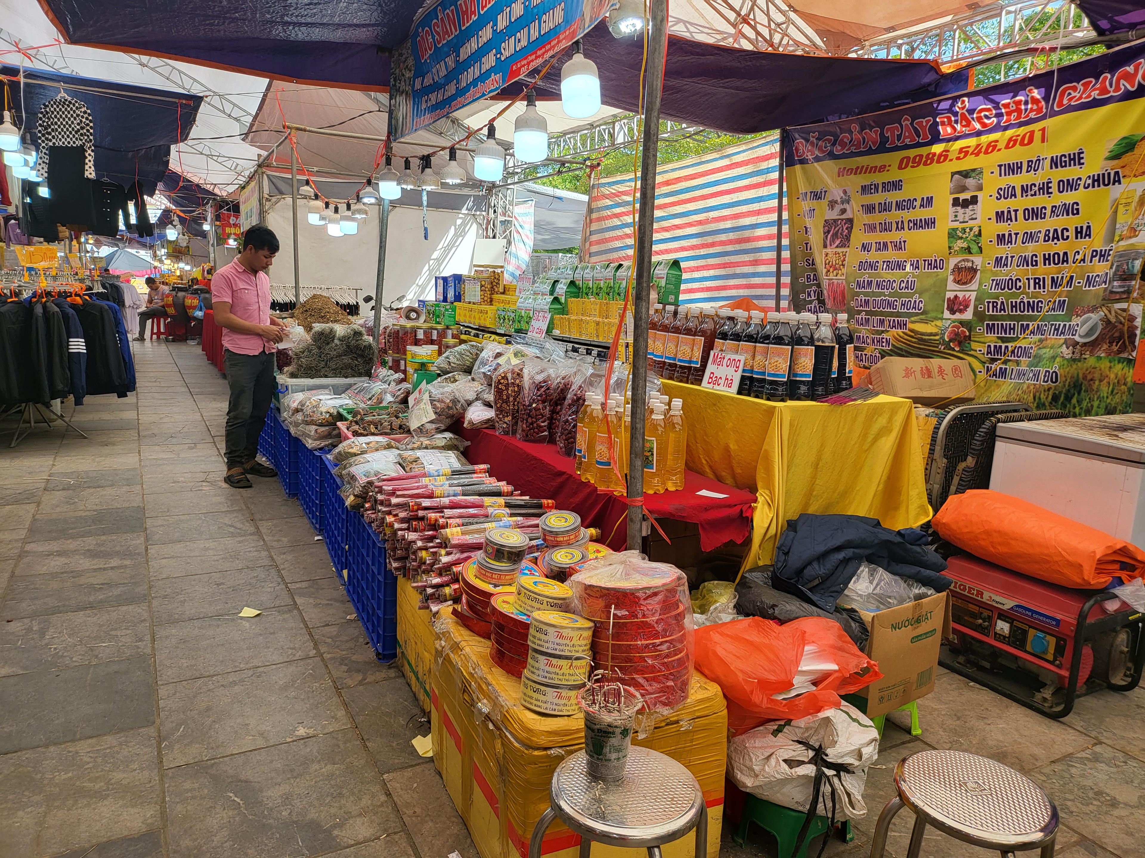 Các sản phẩm đặc trưng của địa phương được bày bán tại hội chợ. |