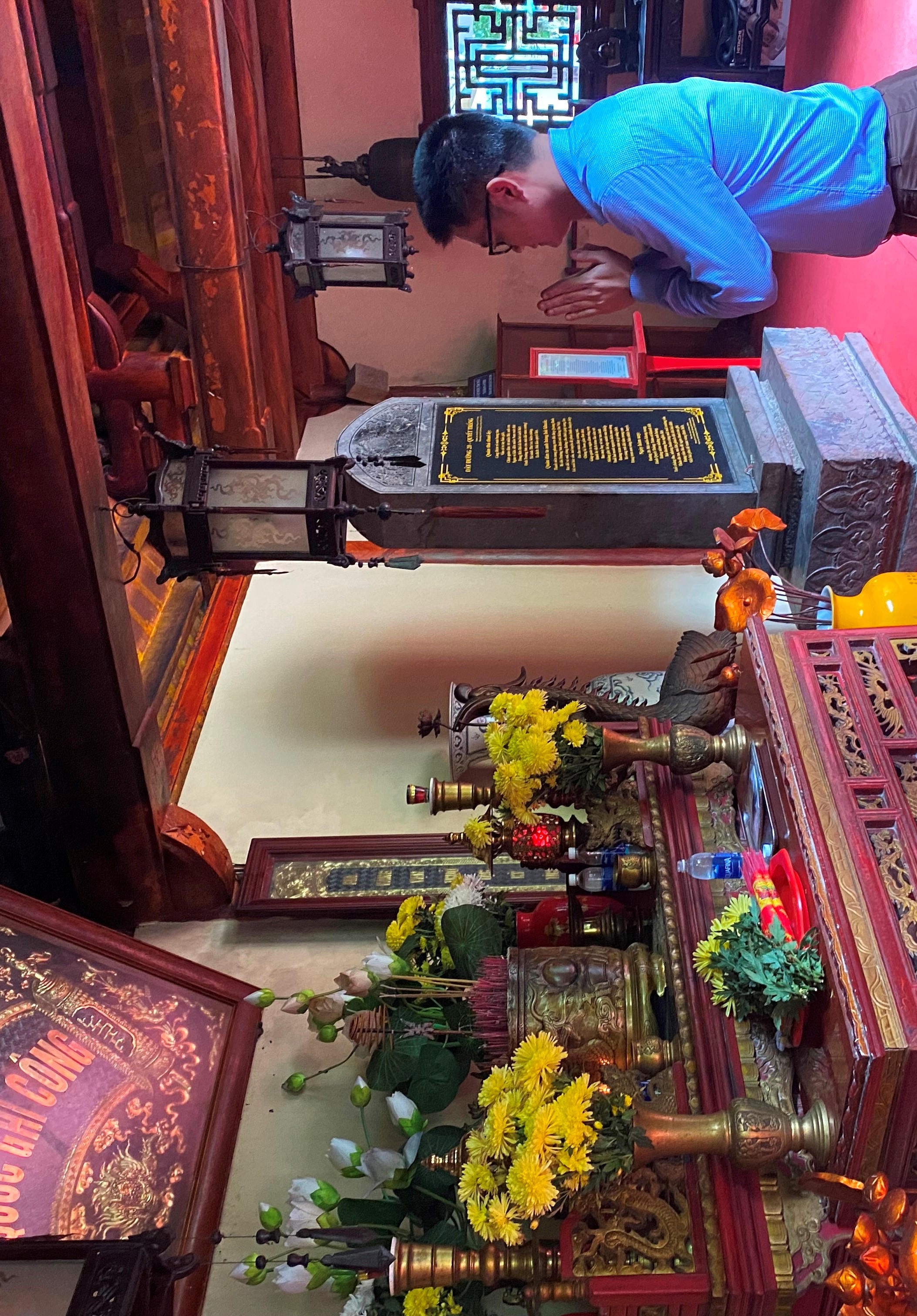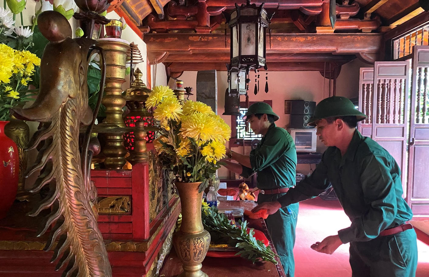 ![]() Du khách dâng hương tri ân trong Đền tưởng niệm các AHLS. Ảnh: Lê Hùng |