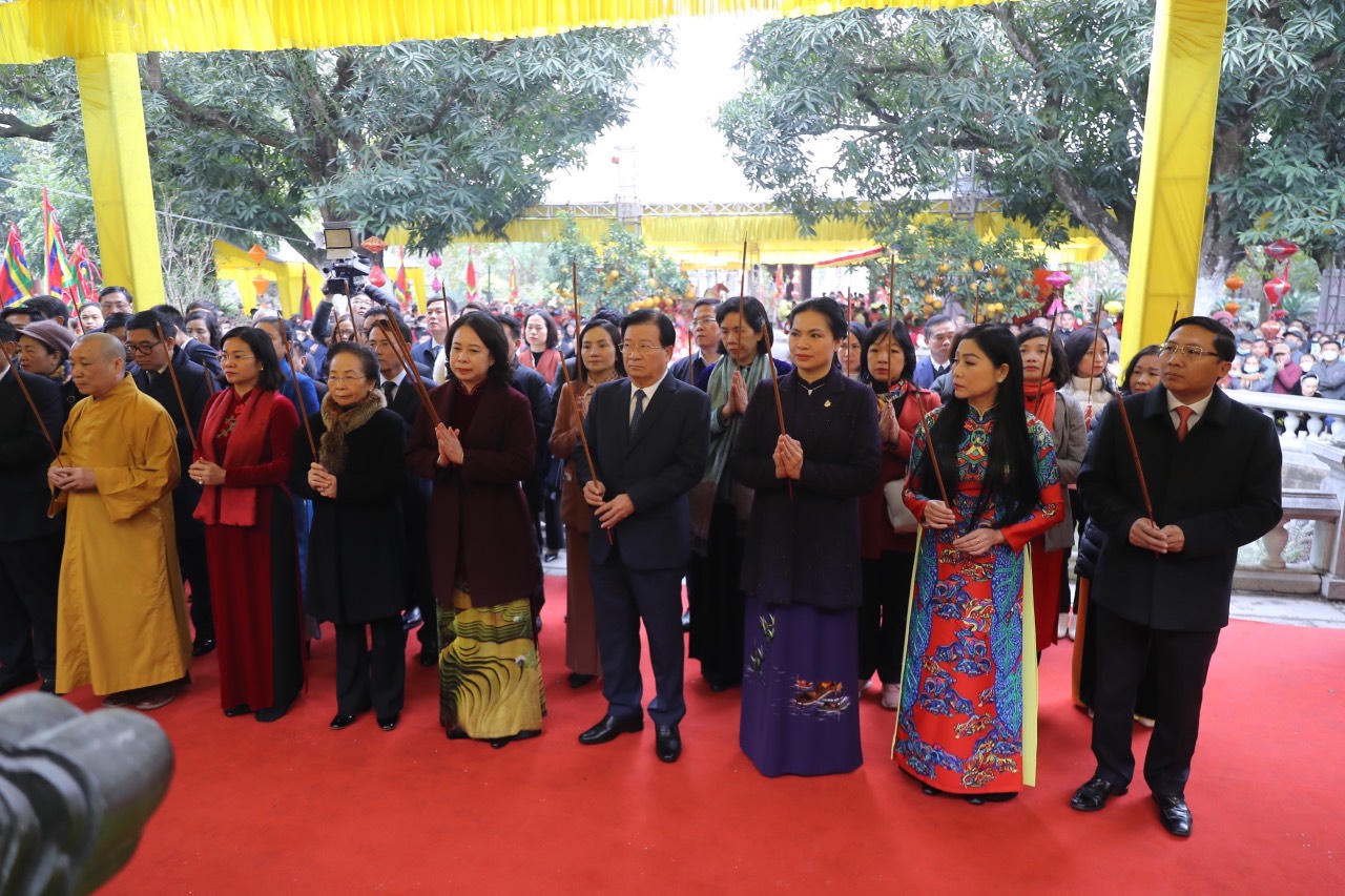 Quyền Chủ tịch nước tin tưởng rằng, trong thời gian tới, cấp ủy, chính quyền các cấp tiếp tục quán triệt và triển khai thực hiện tốt Nghị quyết Đại hội XIII của Đảng, nhất là ý kiến chỉ đạo rất quan trọng của Tổng Bí thư Nguyễn Phú Trọng tại Hội nghị Văn hóa toàn quốc vào tháng 11/2021; quan tâm bảo tồn, tôn tạo và phát huy các giá trị văn hoá vật thể và phi vật thể rất đồ sộ, phong phú, đa dạng của các vùng, miền, của đồng bào các dân tộc, trong đó có Di tích lịch sử Quốc gia đặc biệt Đền Hai Bà Trưng và Lễ hội Đền Hai Bà Trưng.
