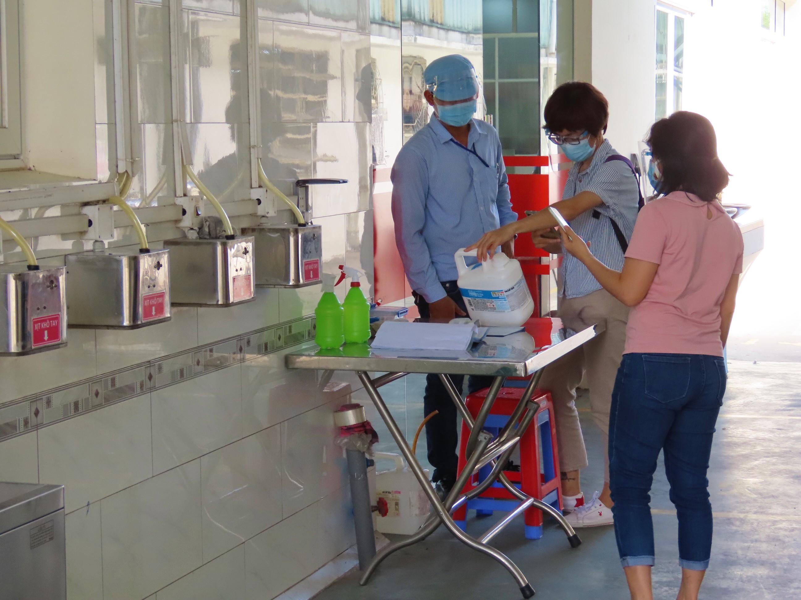 Thành viên trong Tổ công tác của Bộ Y tế hướng dẫn đảm bảo an toàn sinh học, phòng chống dịch. |