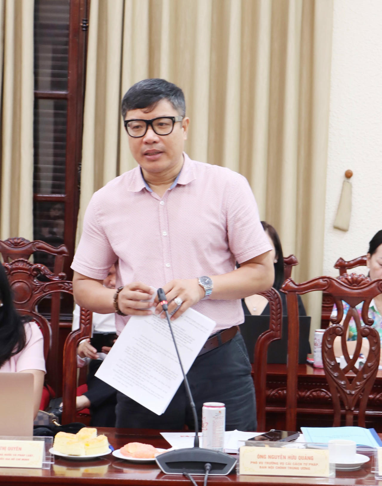 Ông Nguyễn Hữu Quảng - Phó Vụ trưởng Vụ Cải cách tư pháp, Ban Nội chính Trung ương phát biểu. |