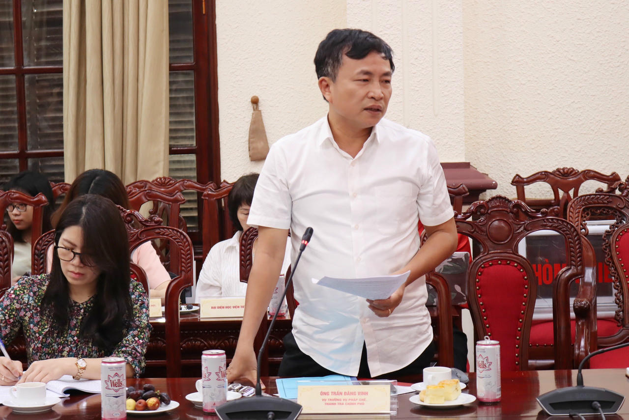 Ông Trần Đăng Vinh - Vụ trưởng Vụ Pháp chế, Thanh tra Chính phủ phát biểu. |