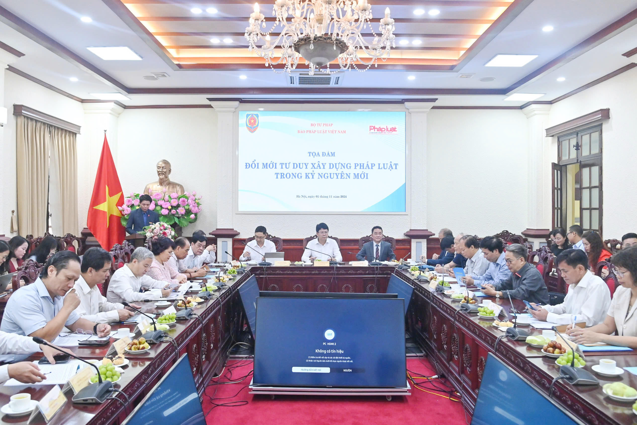 Để kịp thời tổ chức triển khai quan điểm, chỉ đạo của Tổng Bí thư về công tác xây dựng pháp luật, Bộ Tư pháp đã giao Báo Pháp luật Việt Nam xây dựng Chuyên mục "Thể chế trong Kỷ nguyên mới" và tổ chức Tọa đàm hôm nay với Chủ đề: "Đổi mới tư duy xây dựng pháp luật trong Kỷ nguyên mới". Tọa đàm có ý nghĩa rất lớn trong việc định hướng nội dung cho Chuyên mục quan trọng này.