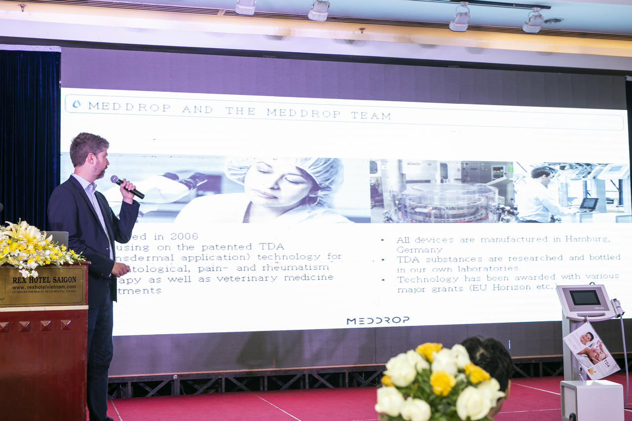 Tại Tọa đàm, ông Carsten Schueerhoff - Giám đốc Marketing Công ty Meddrop và bà Sarah Tú – Giám đốc Công ty TNHH Sarah Le cũng đã giới thiệu công nghệ mới SEYO TDA. Đây là sản phẩm đến từ Đức kết hợp tương lai cho làn da, là sản phẩm đột phá công nghệ độc quyền tại Việt Nam. Giải pháp duy nhất và đầu tiên trên thế giới thay thế tiêm filler Botox, phẫu thuật thẩm mỹ.
