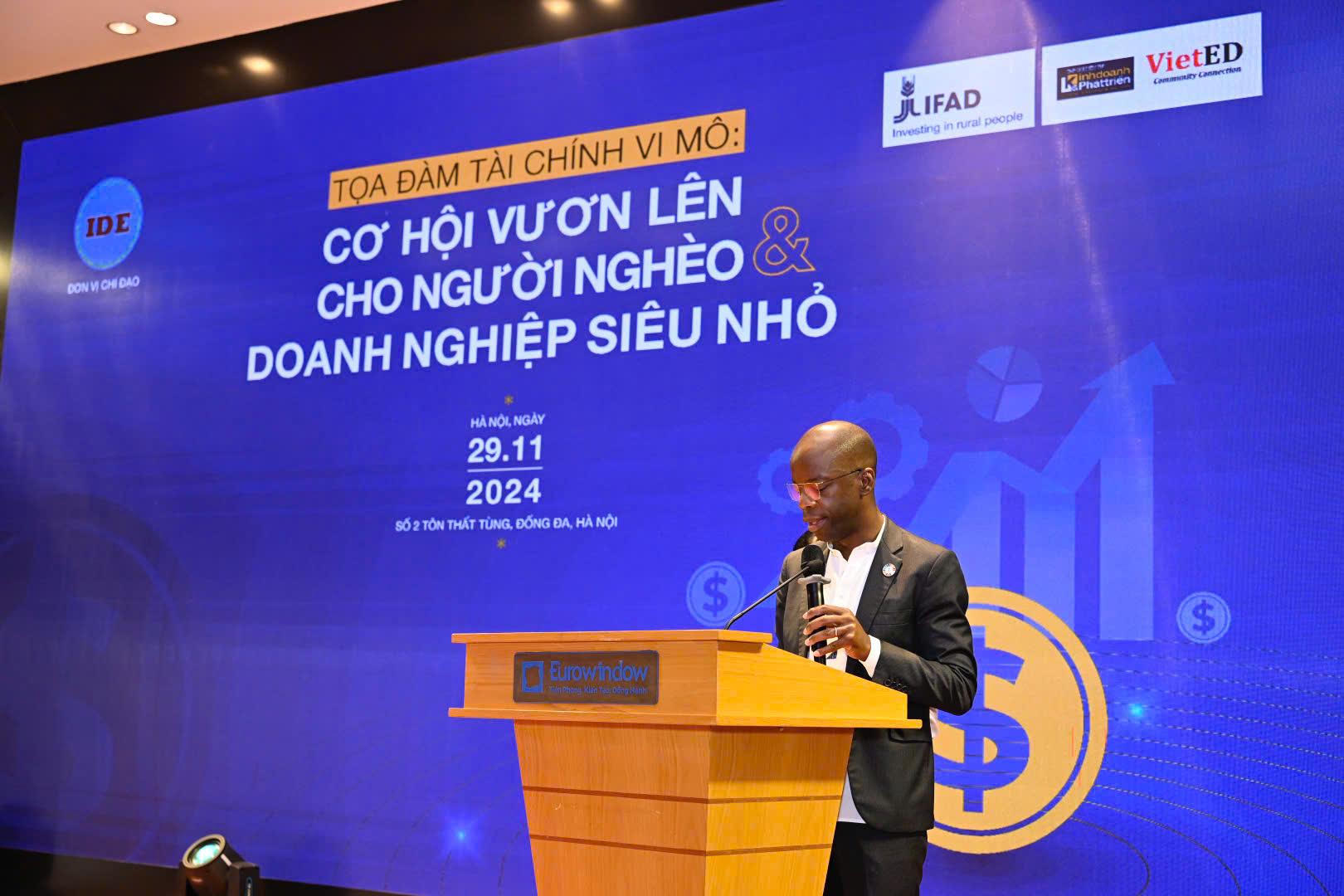 Phát biểu khai mạc, ông Ambrosio N. Barros - Trưởng đại diện văn phòng quốc gia khu vực Mekong, Giám đốc Quốc gia IFAD Việt Nam, Lào, Myanmar và Thái Lan - Đại diện nhà tài trợ IFAD tại Việt Nam mong rằng, các ý kiến thảo luận không chỉ xác định các vấn đề và thách thức trong việc phát triển lĩnh vực tài chính vi mô mà còn đề xuất các hành động cụ thể để tiếp tục hỗ trợ người nghèo và doanh nghiệp siêu nhỏ.