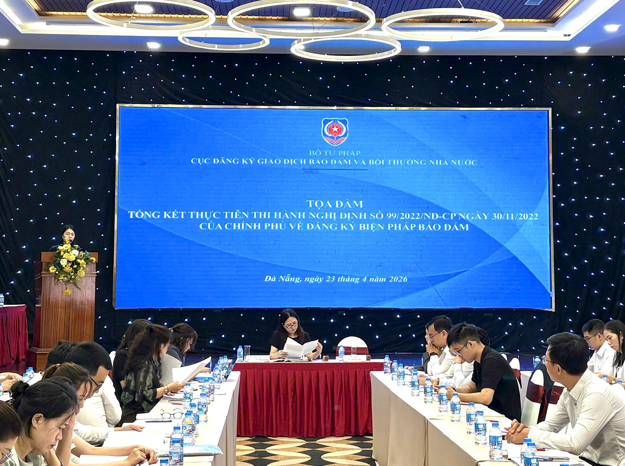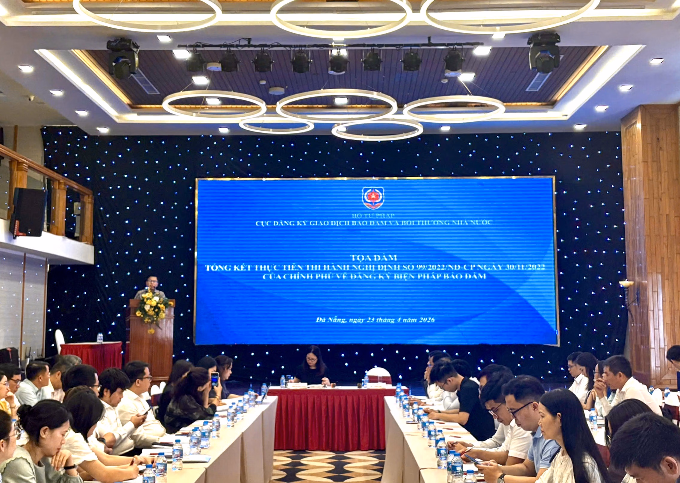 (PLVN) - Thực hiện Kế hoạch công tác năm 2026 (ban hành kèm theo Quyết định số 3710/QĐ-BTP ngày 26/12/2025 của Bộ trưởng Bộ Tư pháp), trên cơ sở Kế hoạch số 54/ KH-CĐK&BTNN ngày 24/02/2026 của Cục Đăng ký giao dịch bảo đảm và Bồi thường nhà nước, ngày 23/4, Cục Đăng ký giao dịch bảo đảm và Bồi thường nhà nước, Bộ Tư pháp phối hợp với Sở Tư pháp TP Đà Nẵng tổ chức Tọa đàm Tổng kết thực tiễn thi hành Nghị định 99/2022/NĐ-CP ngày 30/11/2022 của Chính phủ về đăng ký biện pháp bảo đảm.