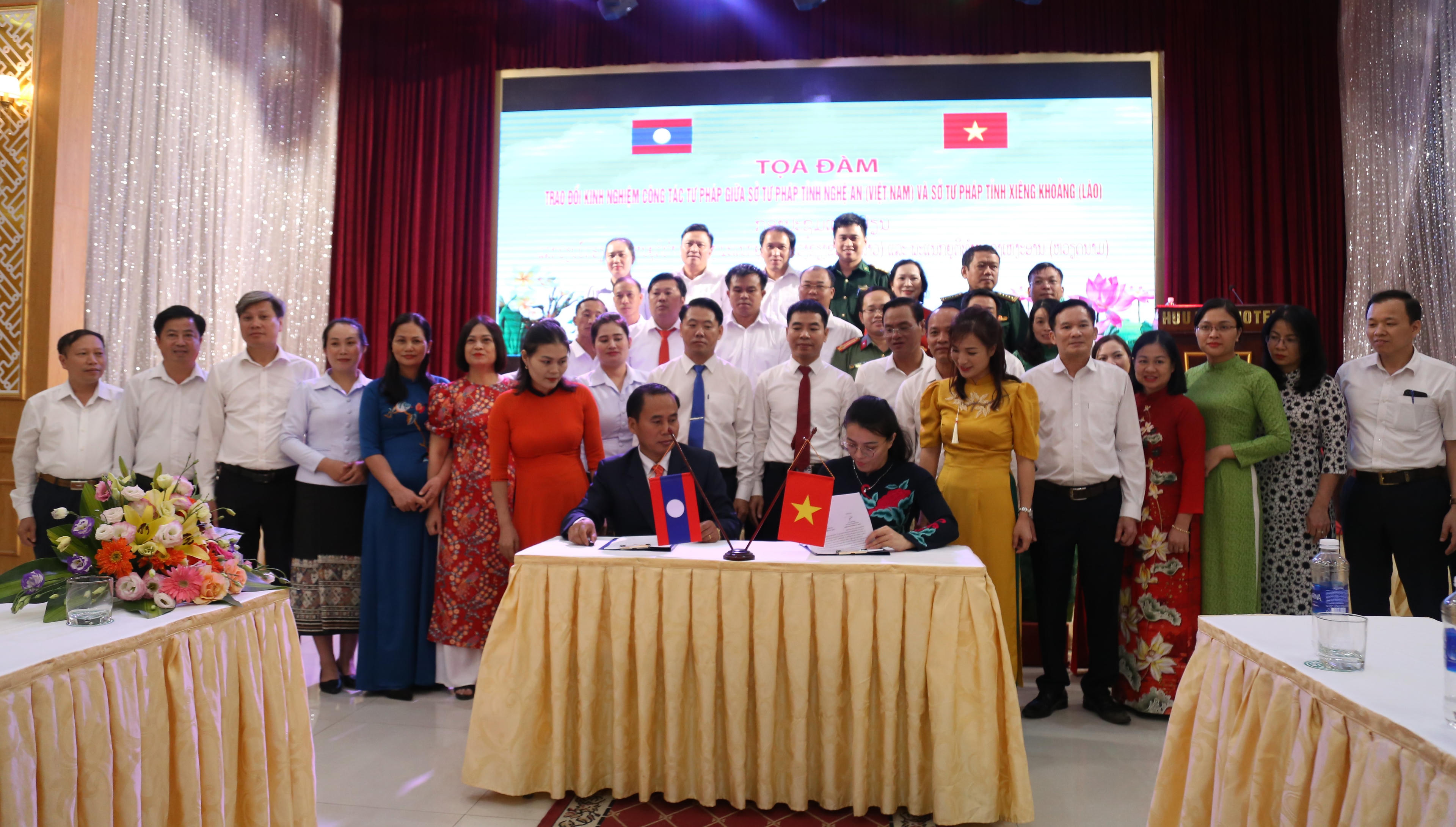 Cũng tại buổi tọa đàm, Giám đốc Sở Tư pháp 2 tỉnh đã ký kết Biên bản ghi nhớ Thỏa thuận hợp tác giữa hai Sở Tư pháp Nghệ An và Xiêng Khoảng.