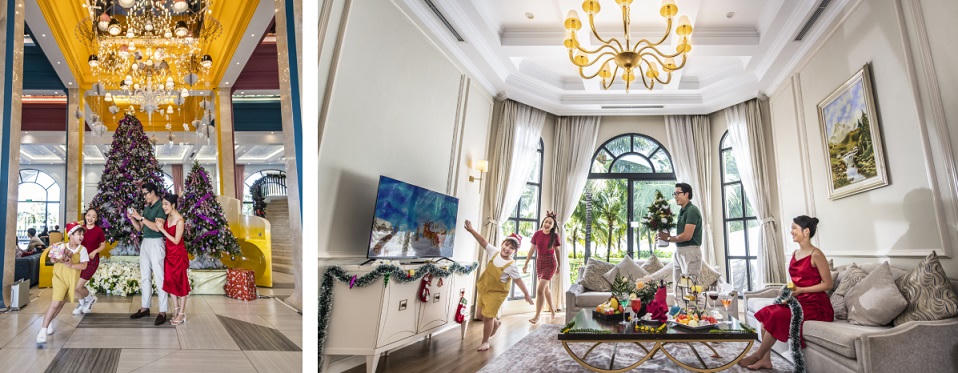 Không khí lễ hội đã ngập tràn Phú Quốc United Center ngay tại sảnh đón tiếp sang trọng của hệ thống khách sạn Vinpearl. Đại cảnh hoành tráng, được trang hoàng cầu kỳ bởi nhiều tiểu cảnh cây thông, người tuyết, hộp quà, dây đèn… lộng lẫy và ấn tượng của Vinpearl Discovery Wonderworld Phú Quốc như một “bữa tiệc Giáng sinh thu nhỏ” để cả gia đình check-in, cùng nhau hòa mình vào không khí Noel khó quên.