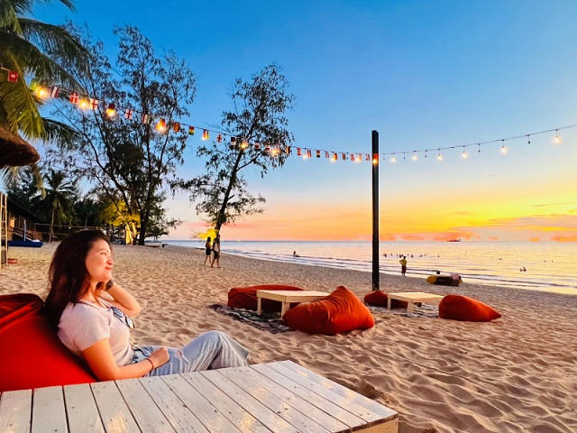 Du khách yêu thích sự nhẹ nhàng, lãng mạn của đảo ngọc sẽ như “lạc lối giữa thiên đường lãng mạn” tại Sim Bar, Vinpearl Resort & Spa Phú Quốc. Với vị trí nằm sát biển, sở hữu bãi cát trắng mịn cùng tầm nhìn phóng khoáng hướng về đại dương xanh ngát và những chi tiết trang trí tinh tế, nơi đây hứa hẹn mang đến khoảnh khắc thư thái tuyệt đối bên ly cocktail đặc sắc, thả hồn trong những giai điệu lễ hội và ngắm nhìn hoàng hôn ngũ sắc tuyệt đẹp buông dần trên mặt biển yên bình.