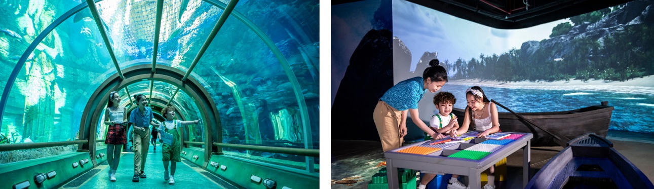Bên cạnh đó, Cung điện Hải Vương 15.000m2, công trình thủy cung hình rùa lớn nhất thế giới cũng tái hiện mùa Giáng Sinh ở thế giới biển sâu với 255.000 sinh vật biển quý hiếm. Du khách sẽ khó cưỡng trước sự đáng yêu cực đỉnh của đàn chim cánh cụt thuộc 6 loài đến từ khắp các nơi trên thế giới: King, Rock Hooper, Gentoo, Adelie, Humboldt, African… sống tại “cung điện băng giá” và tha hồ check-in bằng những góc ảnh độc đáo nhất.