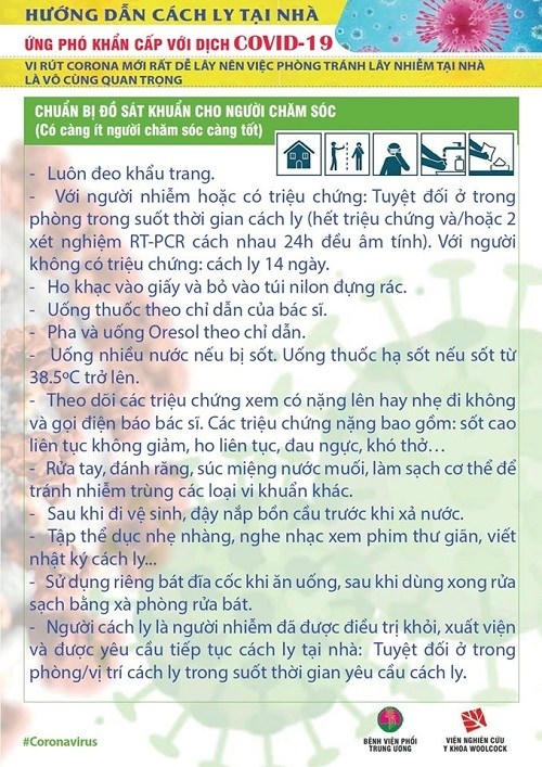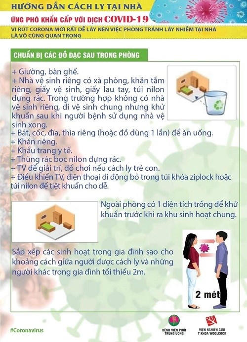 Dưới đây là bộ infographic được phối hợp thực hiện bởi Bệnh viện Phổi trung ương và Viện Nghiên cứu y khoa Woolcock hướng dẫn về việc cách ly tại nhà để phòng lây lan dịch Covid-19.