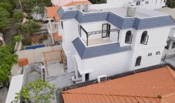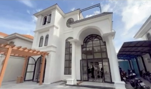 Bạch dinh của Lệ Quyên đang trong quá trình hoàn thiện, căn nhà 3 tầng và có sân rất rộng rãi |