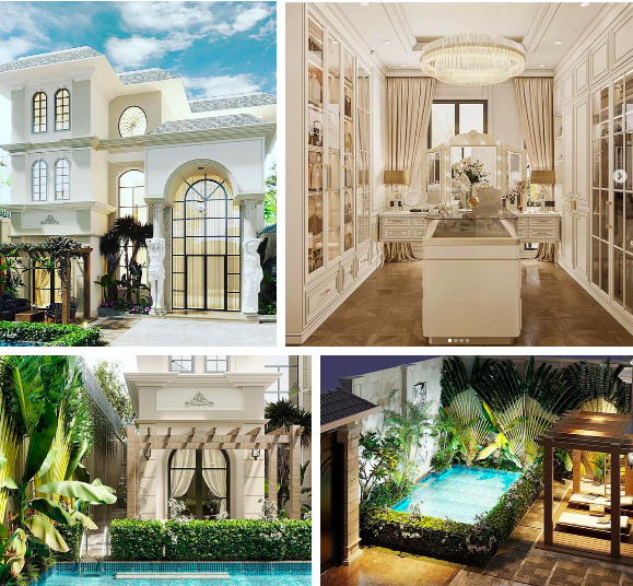 Trước khi dọn về nhà mới, Lệ Quyên đã hé lộ sương sương toàn cảnh căn biệt thự với thiết kế như cung điện. Chỉ vài giây trong clip cũng dễ dàng nhận ra nhà của Lệ Quyên là căn biệt thự 1 trệt 2 lầu, được thiết kế theo phong cách hiện đại, sang trọng với tông màu trắng chủ đạo. Bên trong nhà được đặt rất nhiều cửa kính tạo không gian mở thoáng mát, phía trước còn có cả hồ bơi để gia chủ chill chill.