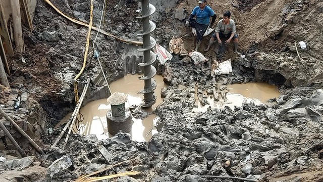 Việc áp dụng khoan xoắn ốc để cố định đất tốt hơn tránh cọc bê tông bị xô lệch, dẫn đến trường hợp bị gãy mối nối cọc bê tông, nguy hiểm cho bé Hạo Nam. Ảnh: Dân trí.
