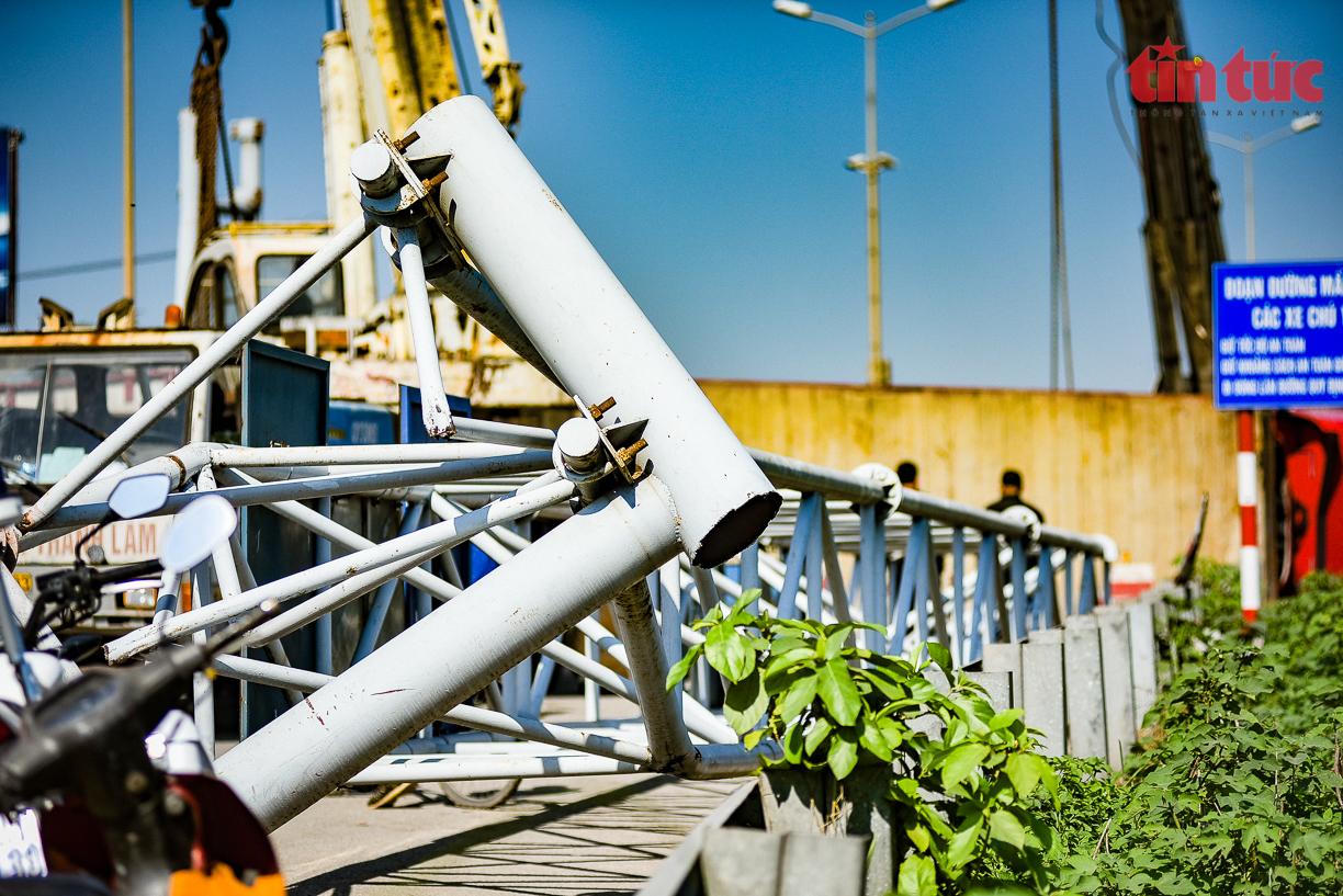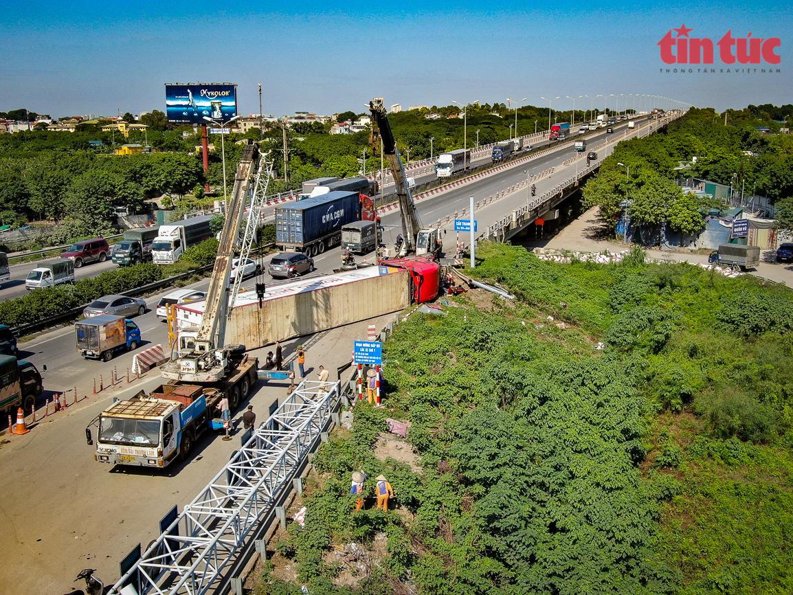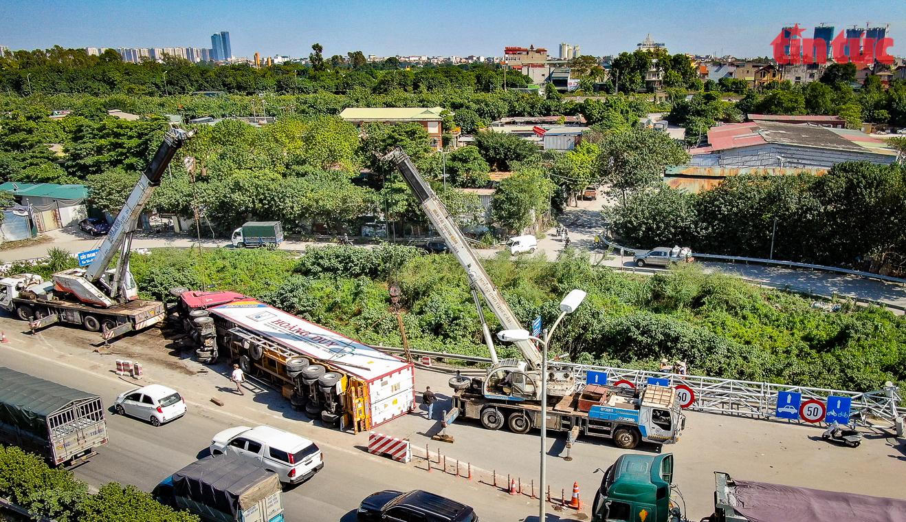 Toàn cảnh hiện trường vụ xe container lật trên cầu Thanh Trì