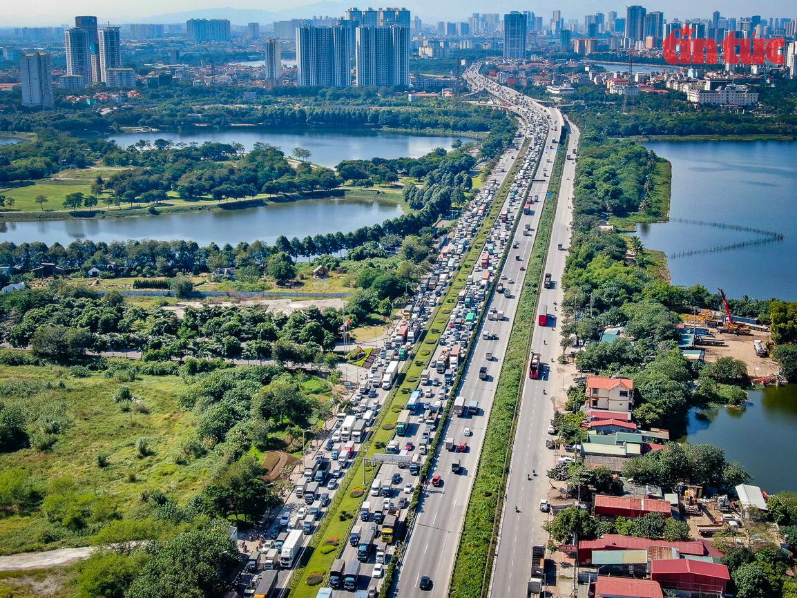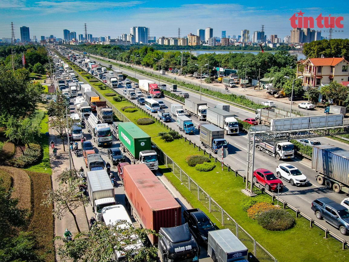 Hàng trăm phương tiện vẫn chưa thể di chuyển từ vành đai 3 qua cầu Thanh Trì.