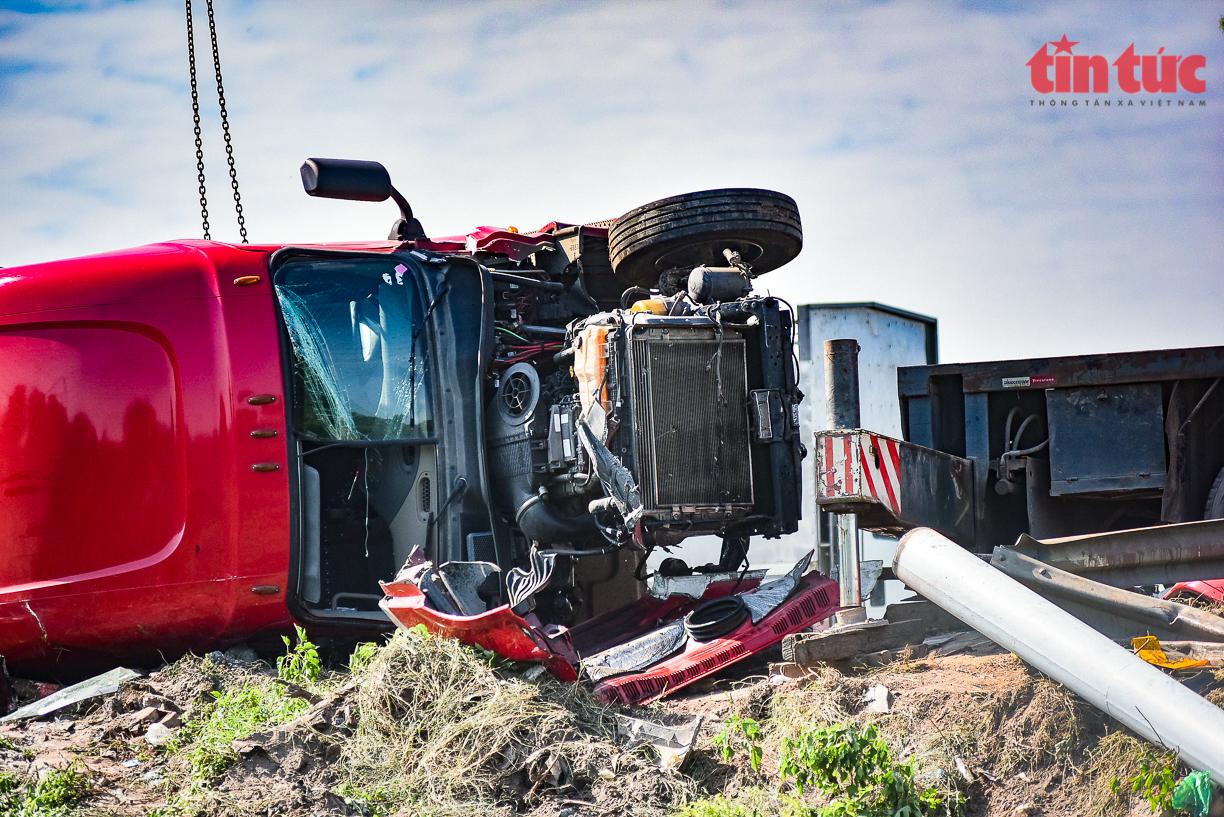 Tính đến 14h30 cùng ngày, chiếc xe container bị tai nạn vẫn chưa được di chuyển ra khỏi hiện trường.