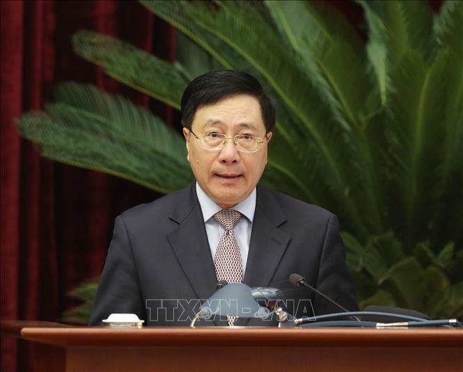 Đồng chí Phạm Bình Minh, Ủy viên Bộ Chính trị, Phó Thủ tướng Thường trực Chính phủ trình bày báo cáo tại hội nghị.