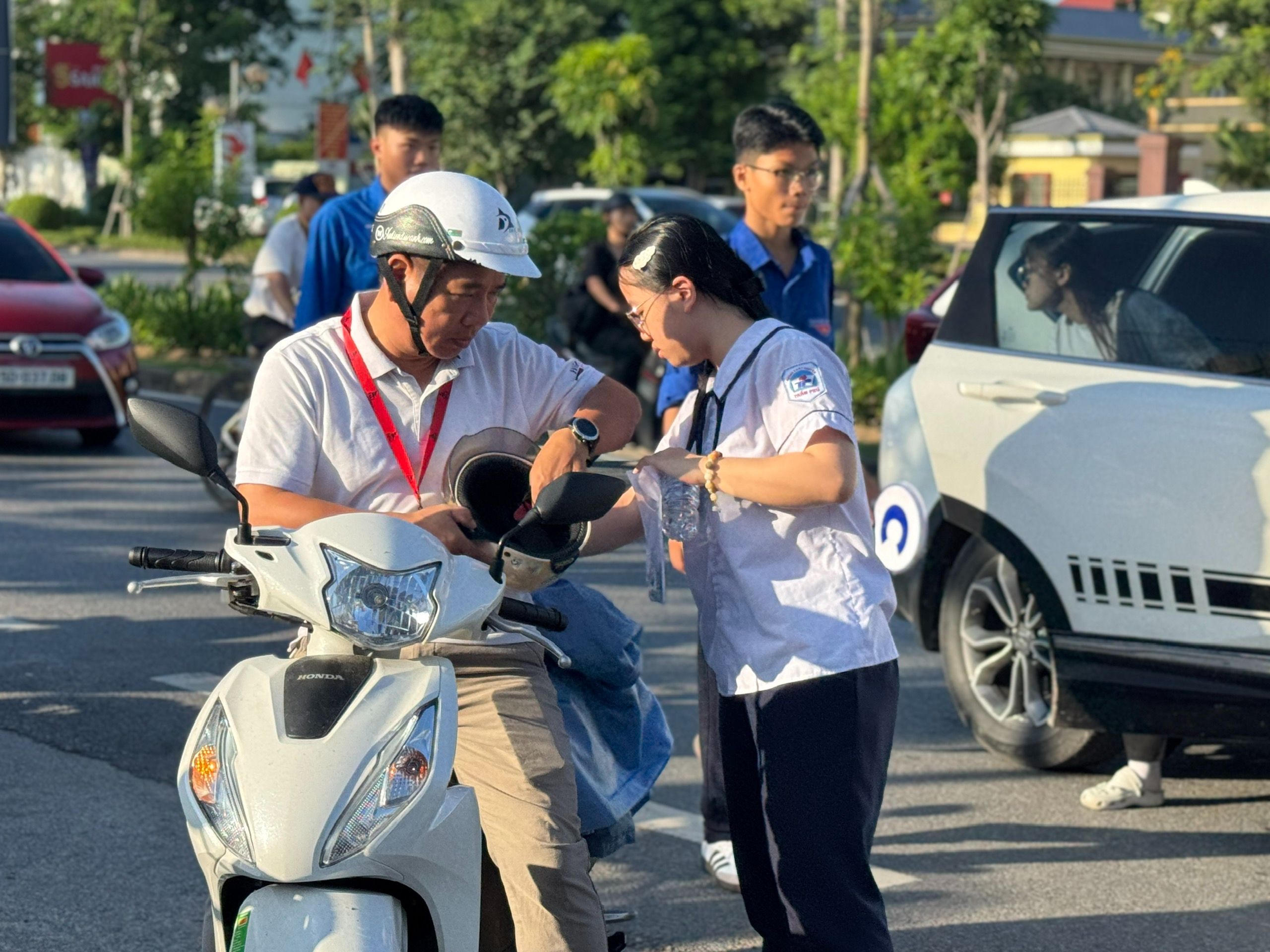 Từ sáng sớm, phụ huynh đã có mặt tại các điểm thi, đồng hành và động viên con em mình. Không khí bên ngoài phòng thi thấm đẫm sự lo lắng, hồi hộp nhưng cũng đầy hy vọng.