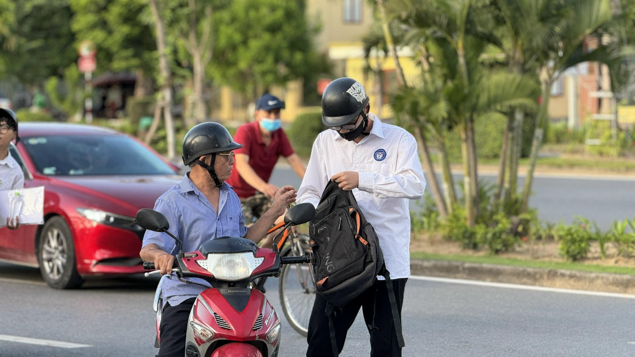 Đồng thời, lực lượng Cảnh sát giao thông làm nhiệm vụ tại điểm thi đã lập tức sử dụng xe ô tô chuyên dụng đến nhà thí sinh. Khi đến nơi, Huy vẫn đang nằm ngủ trong phòng và không mở cửa dù được gọi nhiều lần. Lực lượng Cảnh sát giao thông đã phối hợp với Cảnh sát khu vực tiến hành phá vách cửa nhà để vào trong gọi thí sinh, hỗ trợ thay đồ và đưa em đến điểm thi an toàn, kịp giờ làm bài môn thi đầu tiên.