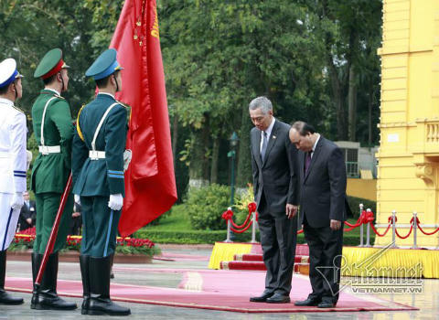 Toàn cảnh lễ đón chính thức Thủ tướng Singapore tại Phủ Chủ tịch