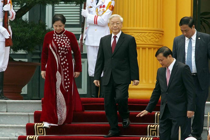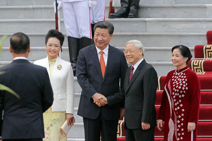 Tổng bí thư Nguyễn Phú Trọng và phu nhân nồng nhiệt chào đón Tổng Bí thư, Chủ tịch Trung Quốc Tập Cận Bình và phu nhân cùng các thành viên trong đoàn đại biểu cấp cao Đảng, Nhà nước Trung Quốc sang thăm Việt Nam.