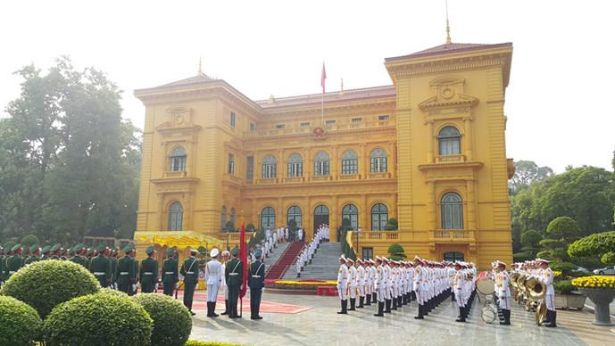 | Lễ đón chính thức Tổng bí thư, Chủ tịch nước Tập Cận Bình bắt đầu diễn ra tại Phủ Chủ tịch - Ảnh: Độc Lập |