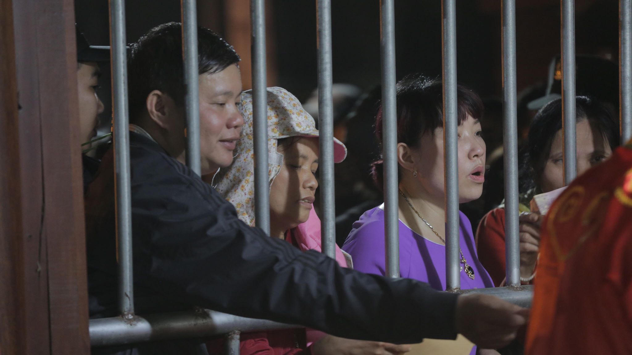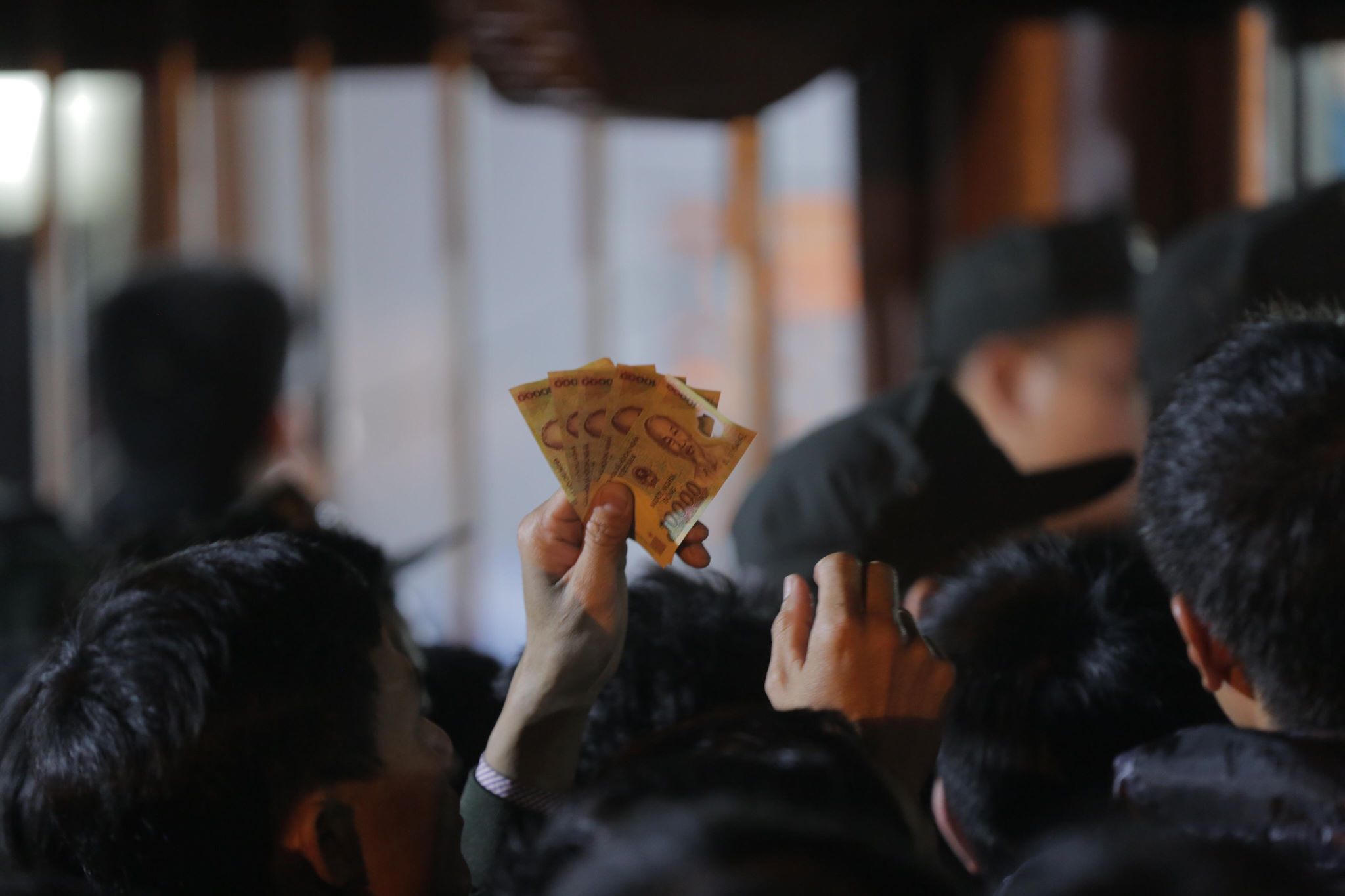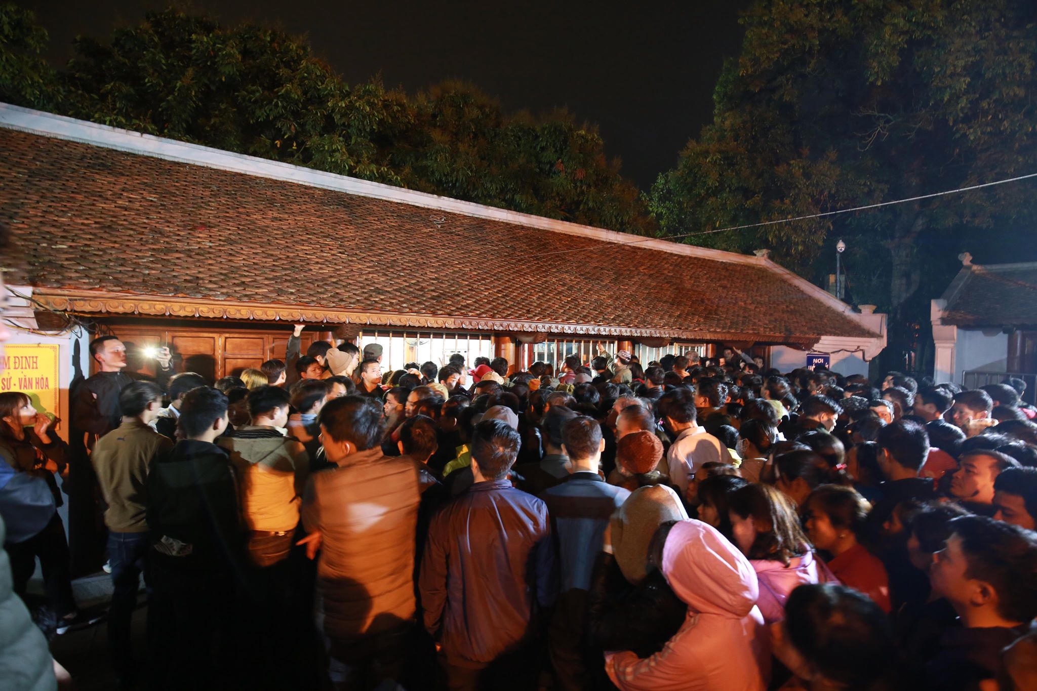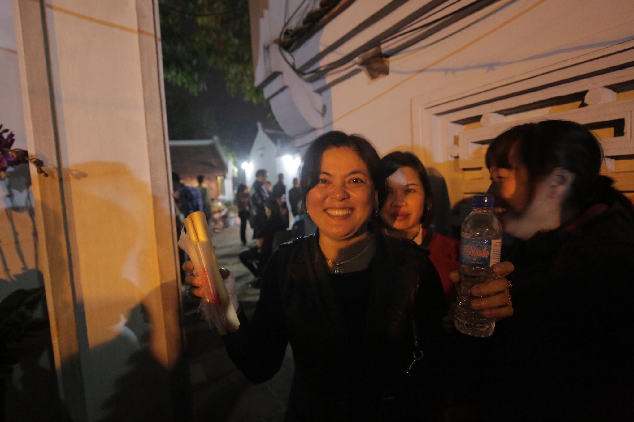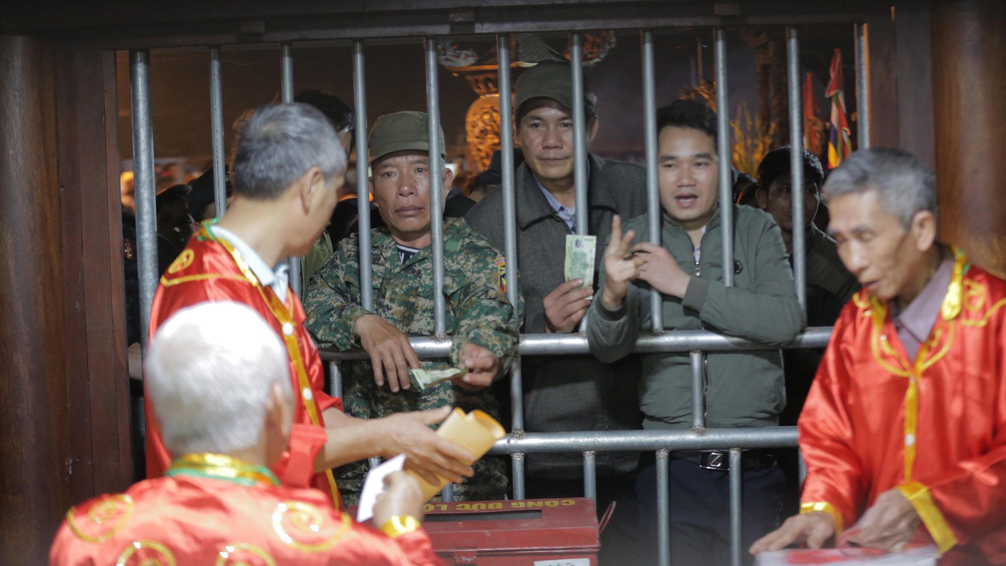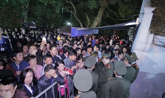 Trong đêm Khai ấn, dòng người từ khắp nơi vẫn nườm nượp kéo về đền Trần chờ vào dâng hương và đợi đến giờ phát ấn để xin lộc ấn đầu năm.
