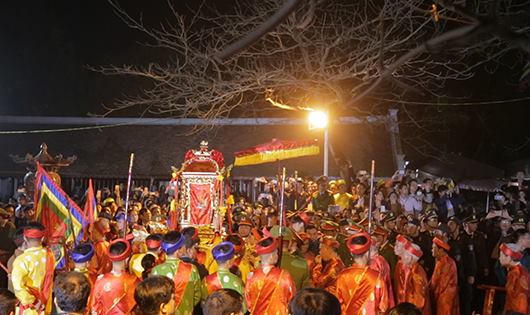 Sau nghi lễ dâng hương tại Ban thờ Trung thiên đền Thiên Trường, đúng 22 giờ 45 phút, nghi lễ rước kiệu ấn từ đền Cố Trạch thờ Anh hùng dân tộc Trần Hưng Đạo sang đền Thiên Trường được cử hành trang trọng theo đúng nghi thức truyền thống với sự tham gia của hơn 100 người là đại diện cho các tầng lớp nhân dân làng Tức Mặc, phường Lộc Vượng, thành phố Nam Định.
