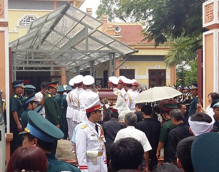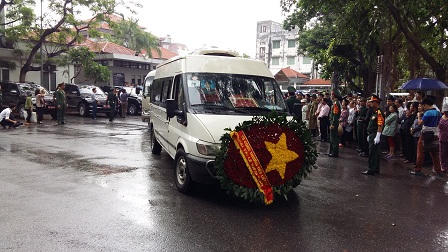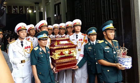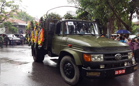 | Kết thúc lễ truy điệu, di hài của các liệt sĩ được đưa ra xe tang trong niềm tiếc thương vô hạn của đồng đội, gia đình và người dân cả nước (Ảnh: Ngọc Bảo) |
