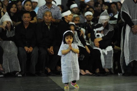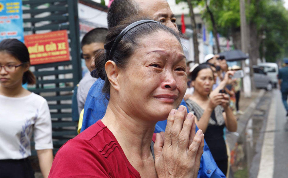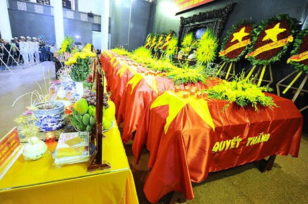Không khí trang nghiêm nhưng đầy xúc động, nghẹn ngào khi người thân, bạn bè hay người đồng đội không kìm được những giọt nước mắt quặn lòng bên những chiếc quan tài phủ quân kỳ quyết thắng.
