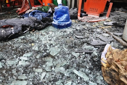Tại hiện trường, lửa khói bốc ra nghi ngút, nhiều cột khói cao cả chục mét tỏa ra nhiều mùi khó chịu. Một chiếc ô tô bị cháy phần đầu và một chiếc xe máy cháy rụi hoàn toàn.