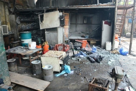 Theo quan sát, khu nhà xưởng rộng hàng trăm m2, được lập bằng mái tôn. Xung quanh đều là kho chứa hàng của các công ty.