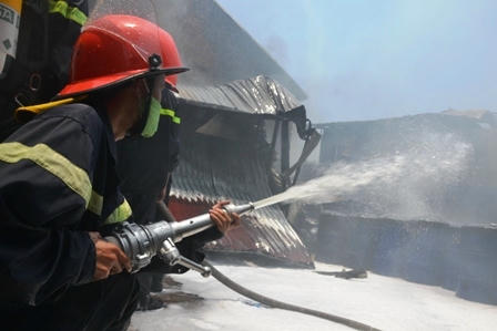 Nhận được tin báo, lực lượng chức năng đã có mặt tại hiện trường để dập tắt đám cháy. Tuy nhiên, kho chứa cồn ở trong nhà mái tôn nên lực lượng chức năng phải dùng máy ủi tôn ra mới tiếp cận được đám cháy.