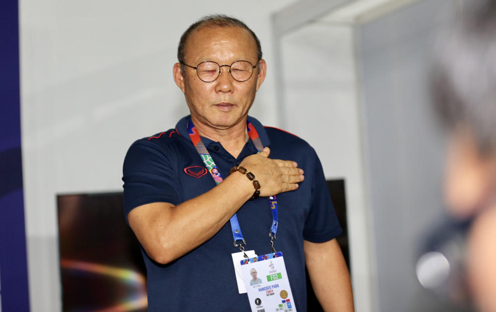 Thay mặt cho đội, HLV trưởng Park Hang Seo đã bày tỏ niềm vui khi lãnh đạo Bộ VH, TT và DL, lãnh đạo TCTDTT, lãnh đạo LĐBĐVN đến thăm đội. “Tôi xin cảm ơn Bộ trưởng, Tổng cục trưởng, Phó Chủ tịch LĐBĐVN tuy bận việc nhưng đã dành thời gian đến thăm đội. Đội tuyển U22 và bây giờ là đội tuyển U23 Việt Nam, sau khi kết thúc SEA Games, đã có chuyến tập huấn tại Hàn Quốc.