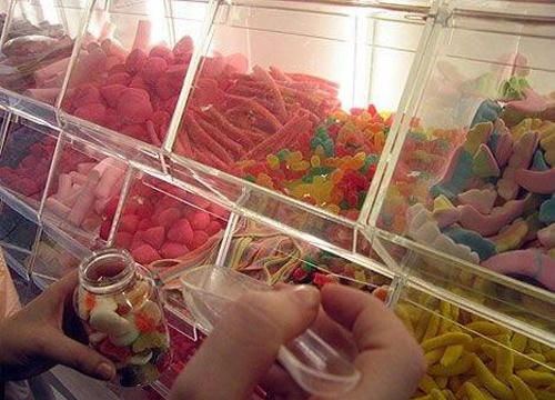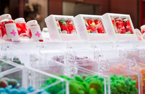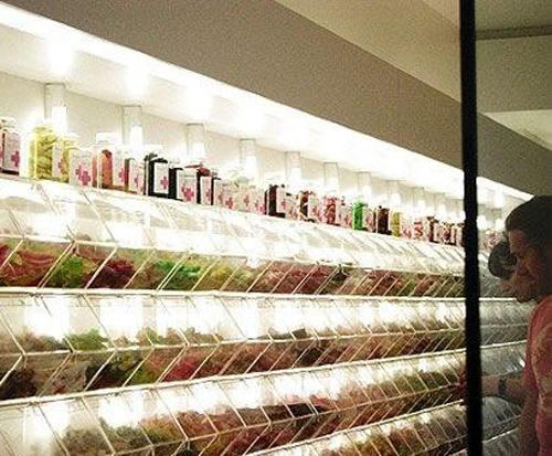 | Bên trong cửa hàng là dãy dài các hộp chứa "thuốc" - thành phần chính của chúng chính là những viên kẹo dẻo bọc đường với nhiều màu sắc, hình thù độc đáo.