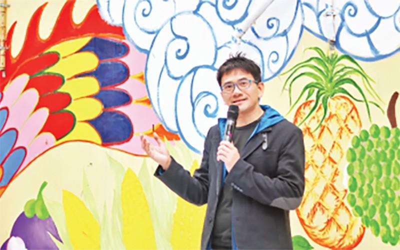 Anh Lê Quang Bình trong sự kiện khánh thành sân chơi tại tổ 16, phường Phúc Tân quận Hoàn Kiếm, Hà Nội. |